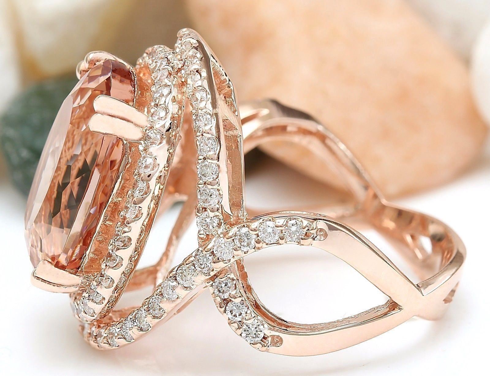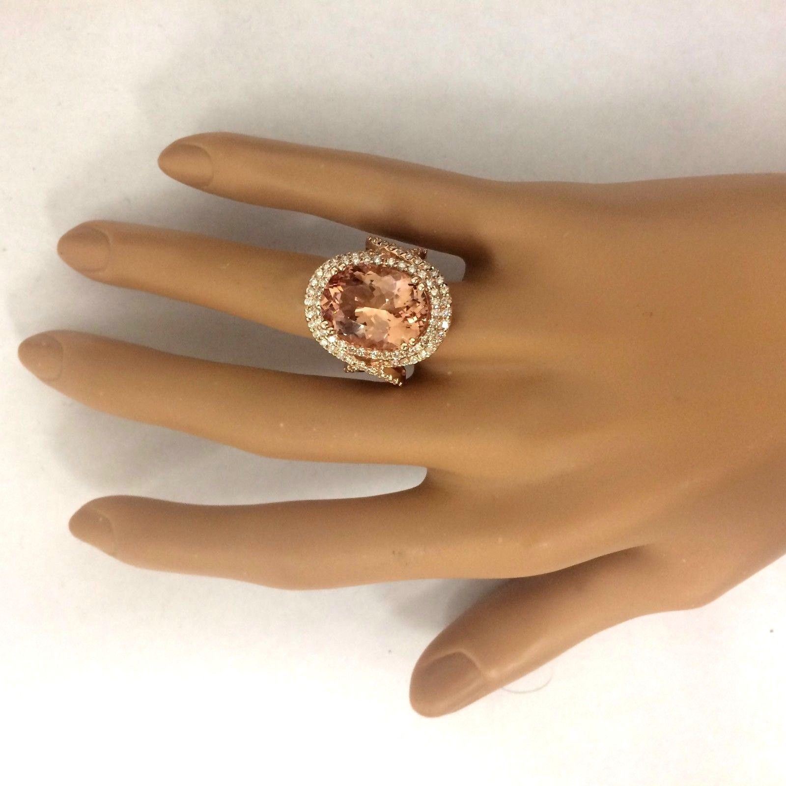 11.51 Carat Natural Morganite 18K Solid Rose Gold Diamond Ring