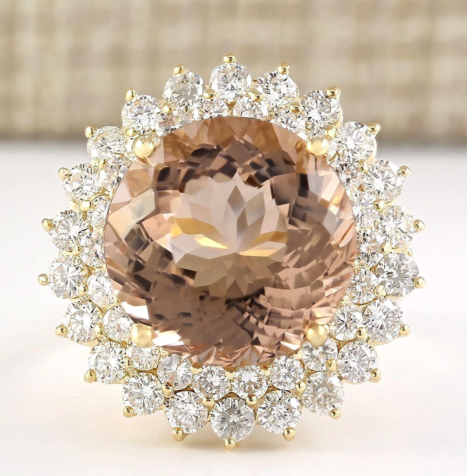 11.51 CTW Natural Morganite And Diamond Ring In 18K Solid Yellow Gold
