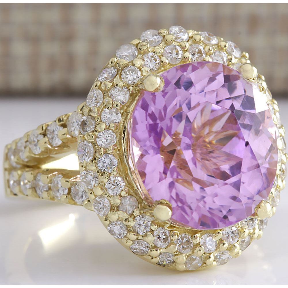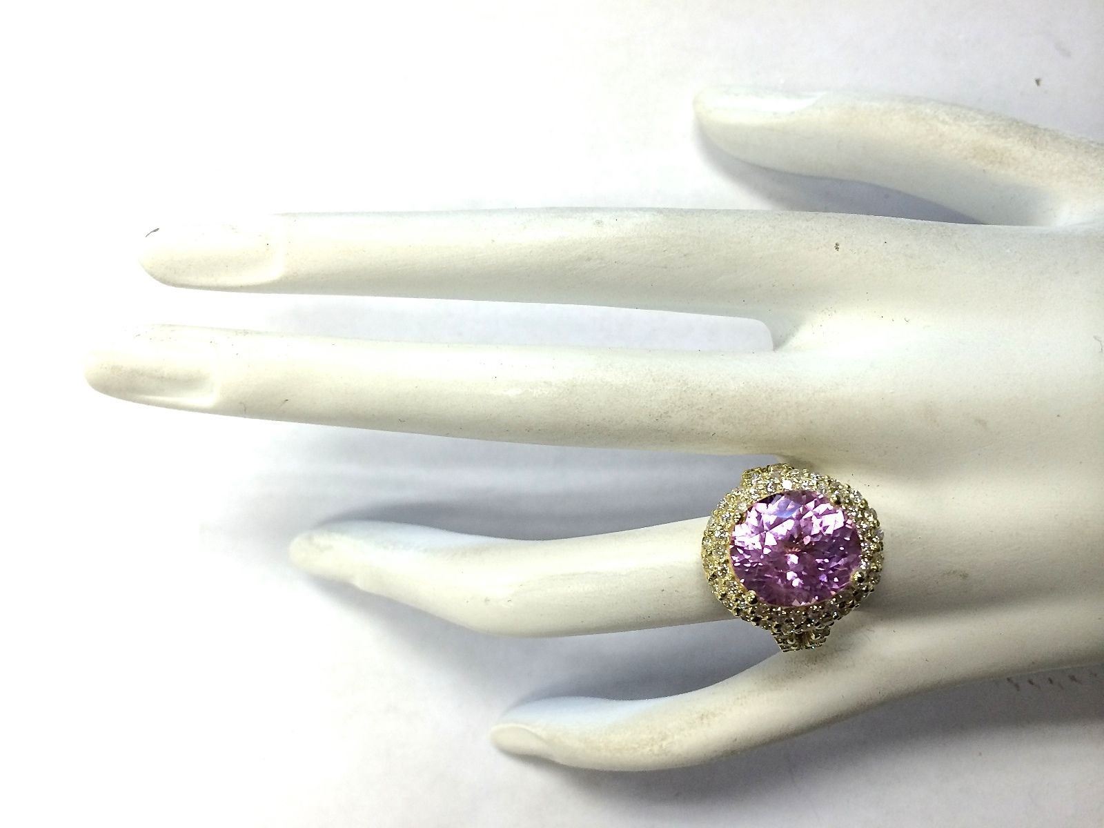 11.51CTW Natural Pink Kunzite And Diamond Ring In 18K Yellow Gold