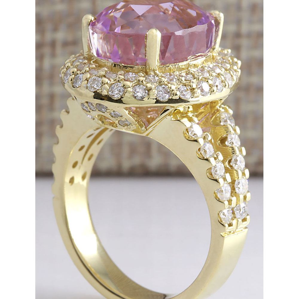 11.51CTW Natural Pink Kunzite And Diamond Ring In 18K Yellow Gold