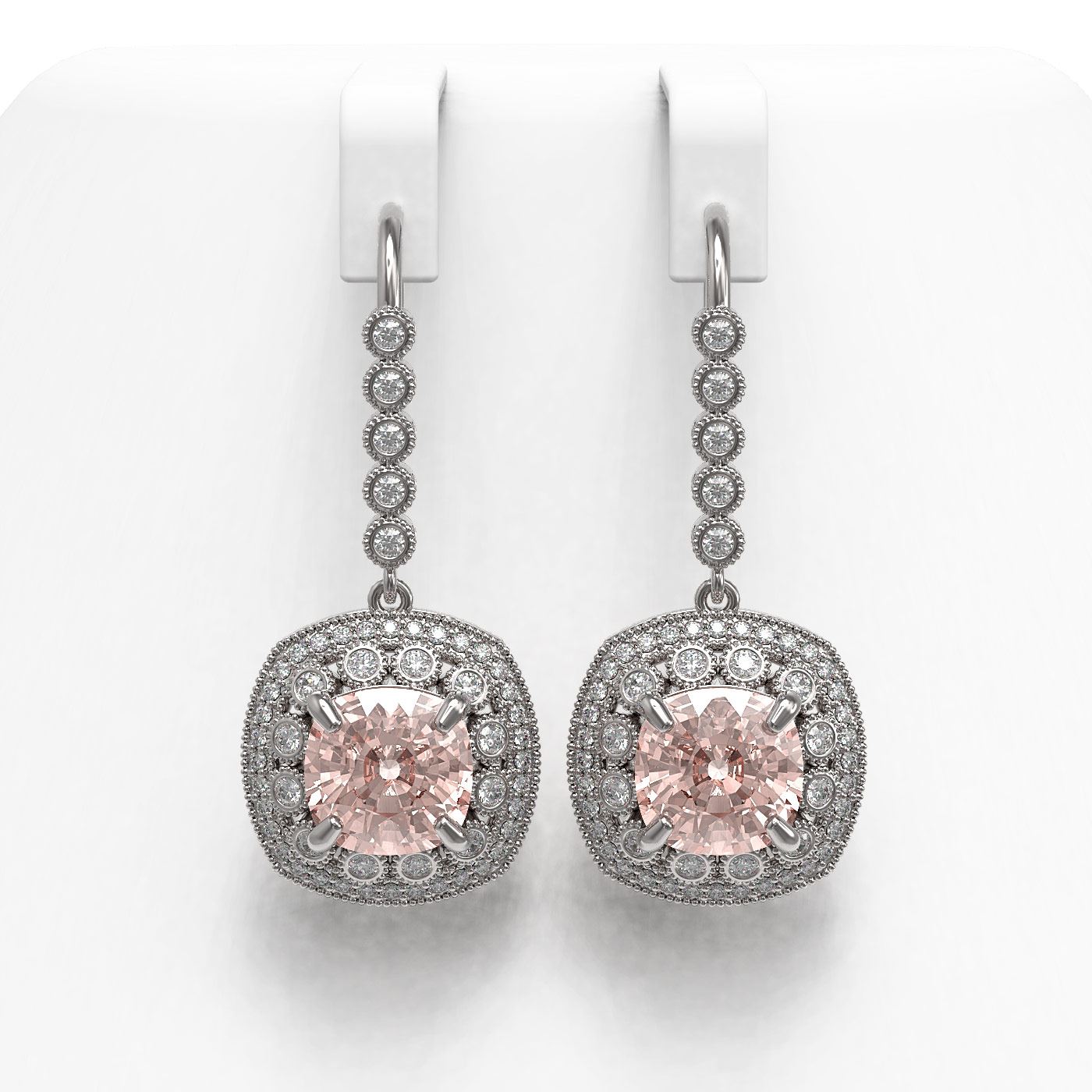 REF-393H3R - SKU: 43973 ---- 11.6 ctw Morganite & Diamond Victorian Earrings 14K White Gold