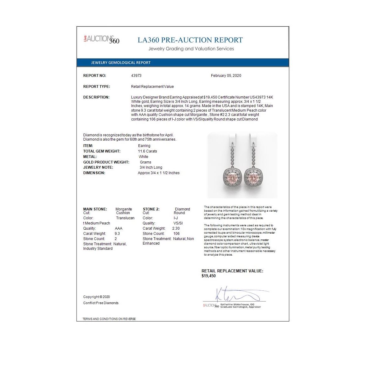 REF-393H3R - SKU: 43973 ---- 11.6 ctw Morganite & Diamond Victorian Earrings 14K White Gold