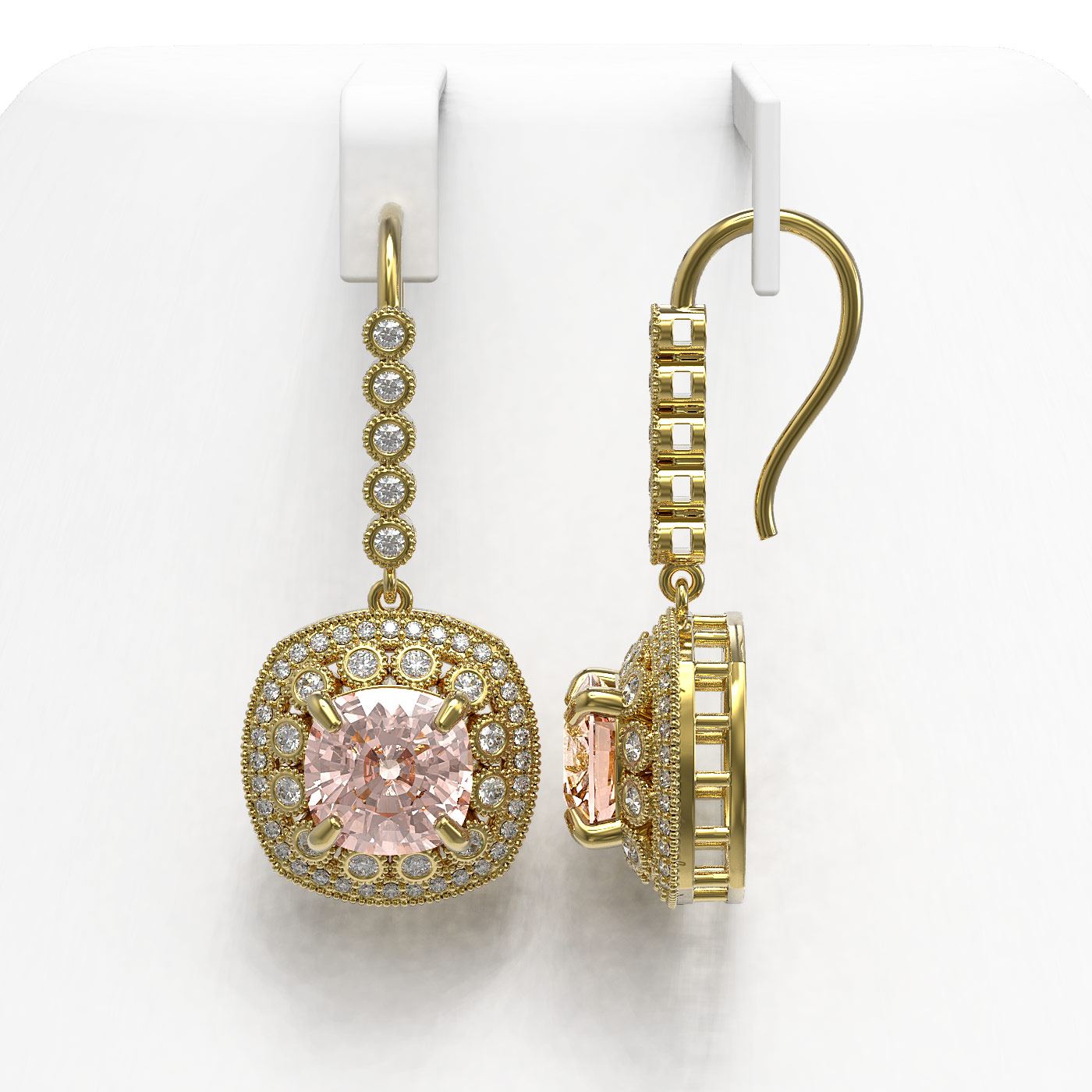 SKU: 43975 ---- 11.6 ctw Morganite & Diamond Victorian Earrings 14K Yellow Gold