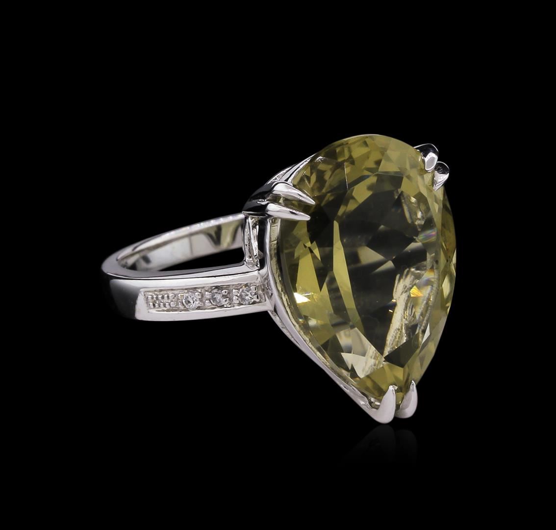 One ring featuring: 14KT white gold weighing 7.00 grams containing one lemon quartz center stone with a total weight of 11.60ct and diamonds with a total weight of 0.05ct.
