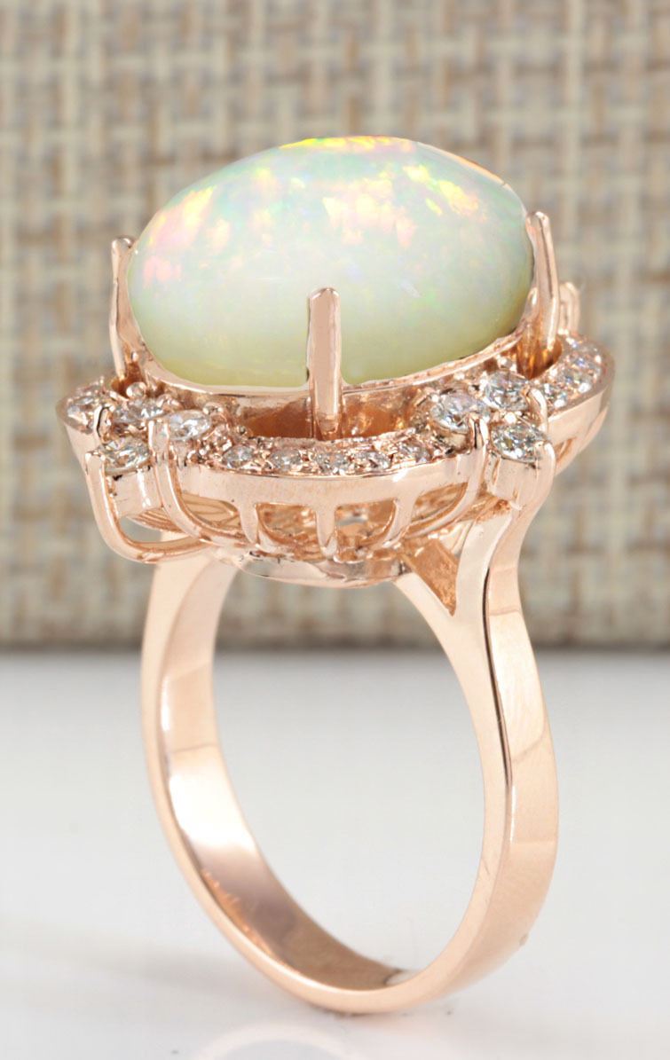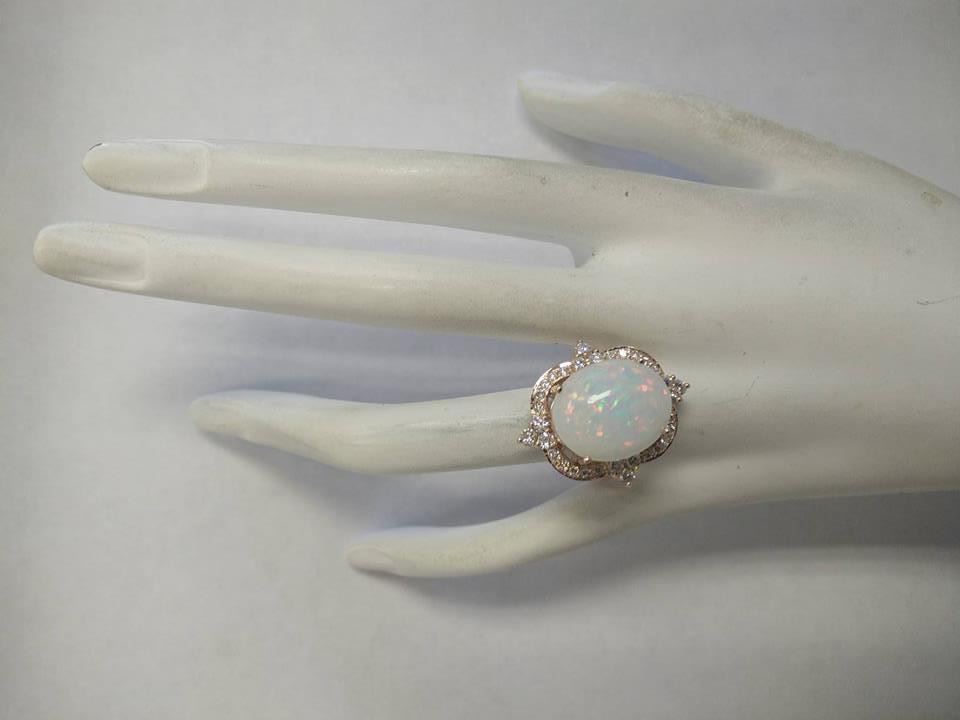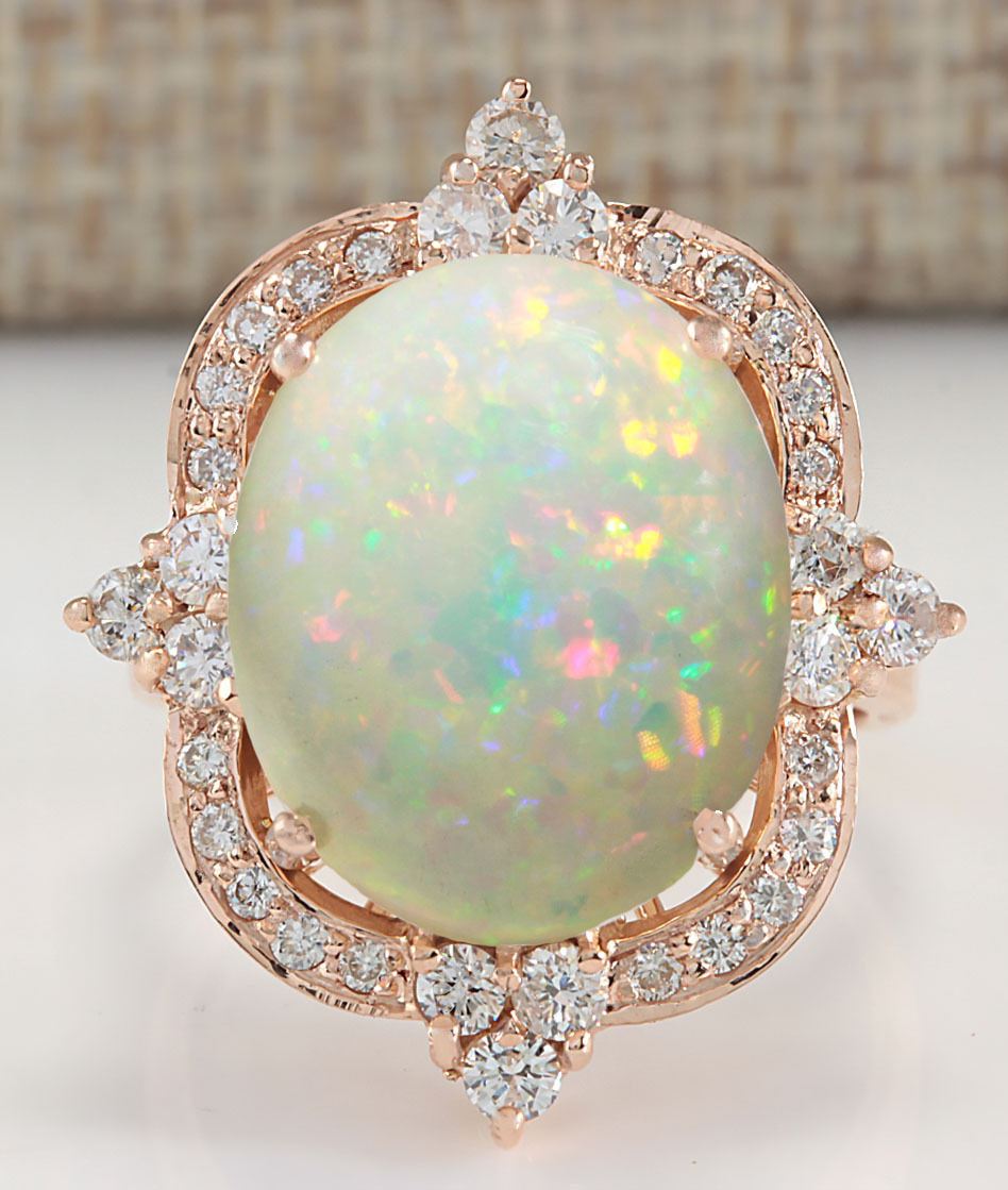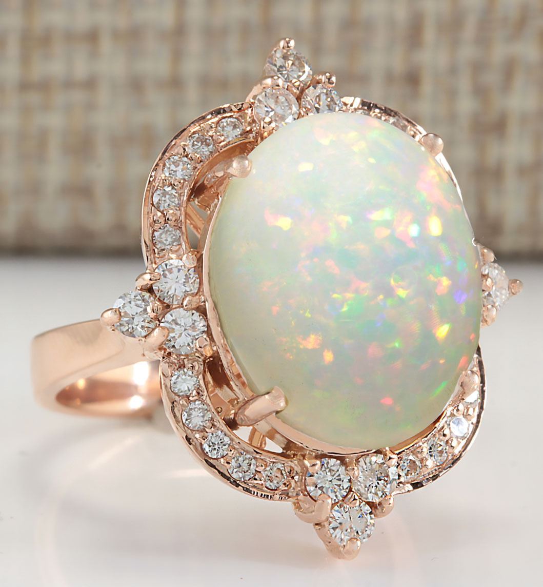 Stamped: 14K Ring Size: 6.75 Total Ring Weight:11.2 Grams Diamond Weight: Total natural diamond weight is .80carat. SI1-SI2 clarity / G-H color Gemstone Weight: Total Natural Opal Weight is 10.80ctw (Measures: 16.50x13.40mm) Face Measures: 26.05x21.87mm Main stone color: Multicolor [SKU:702214]