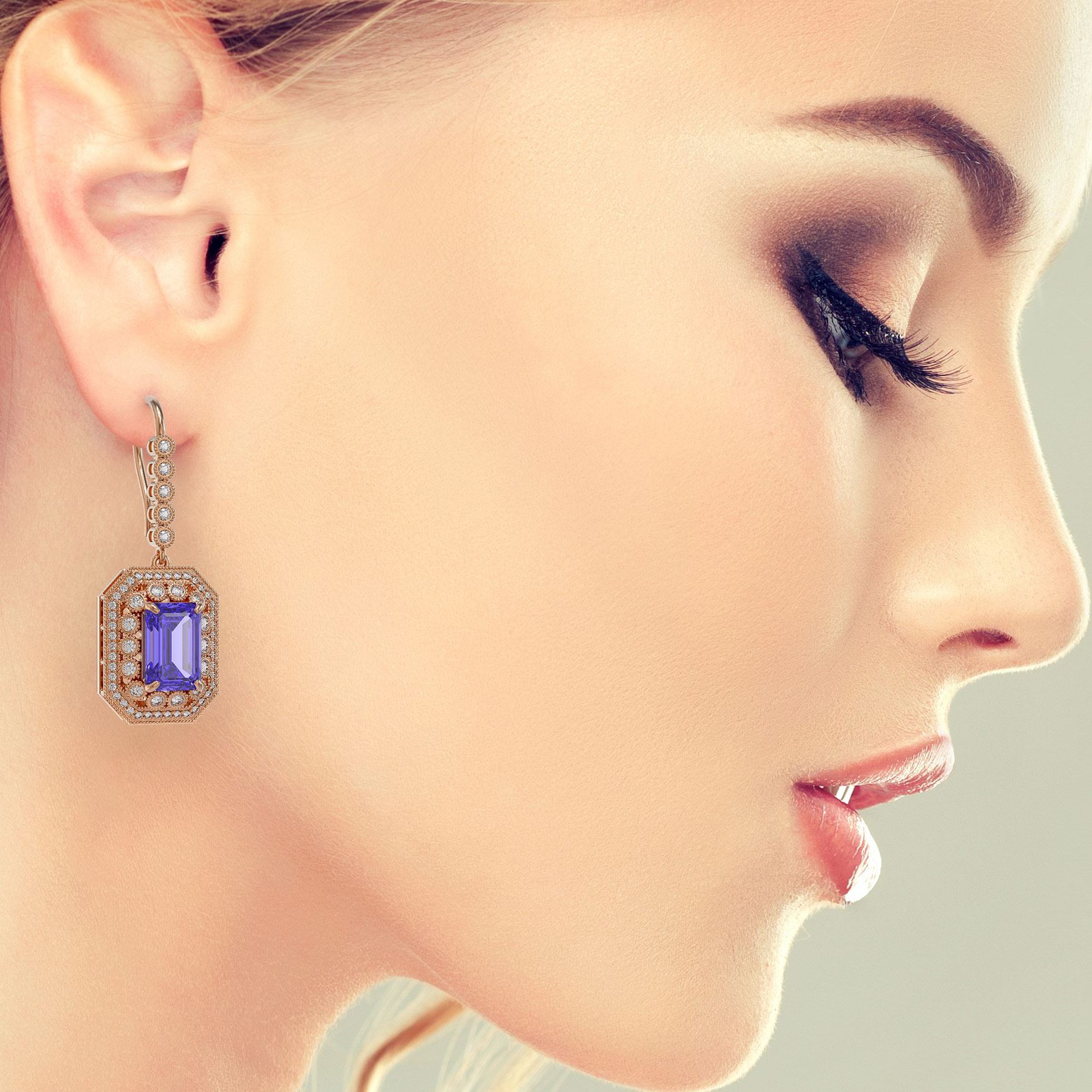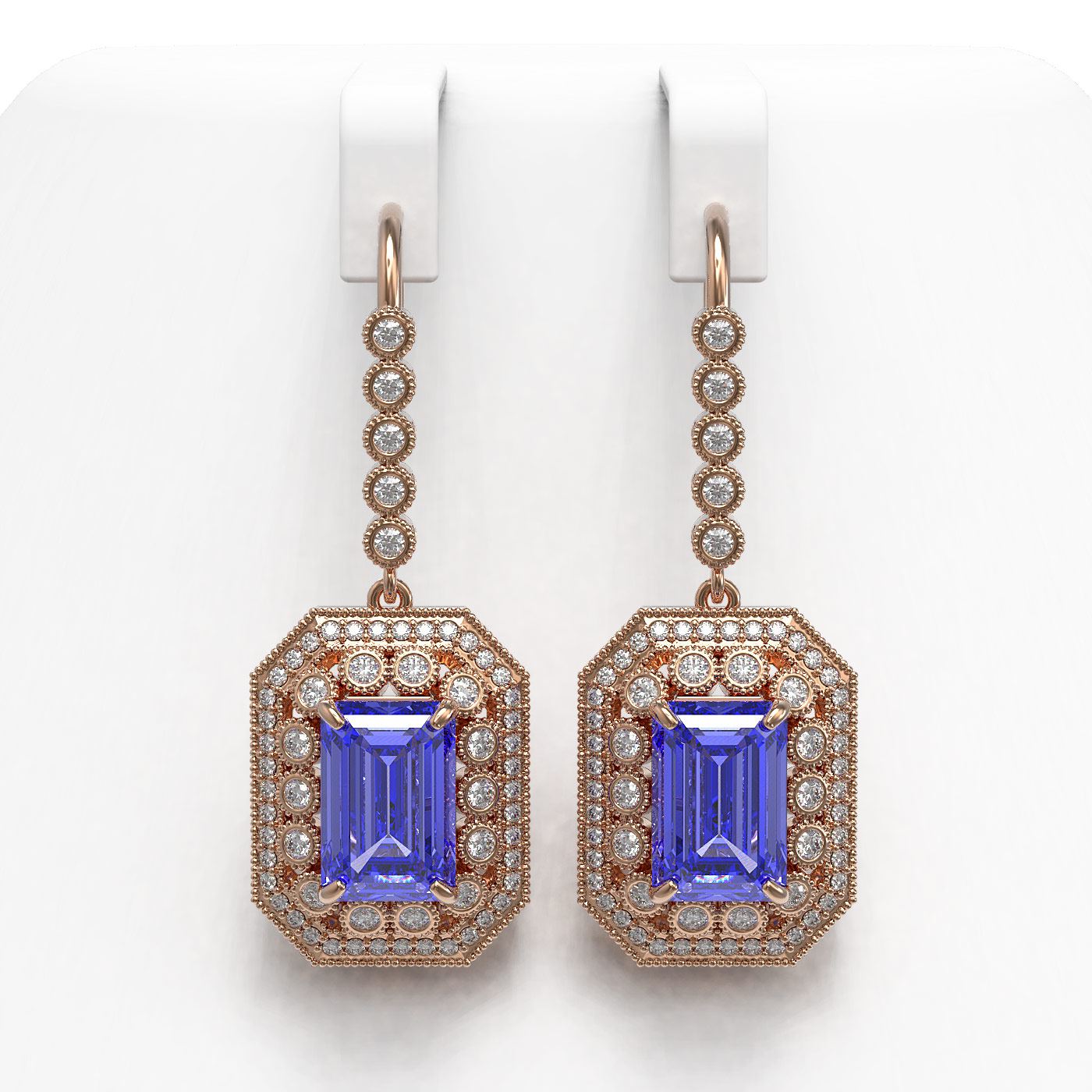 REF-672H8R - SKU: 43398 ---- 11.66 ctw Tanzanite & Diamond Victorian Earrings 14K Rose Gold
