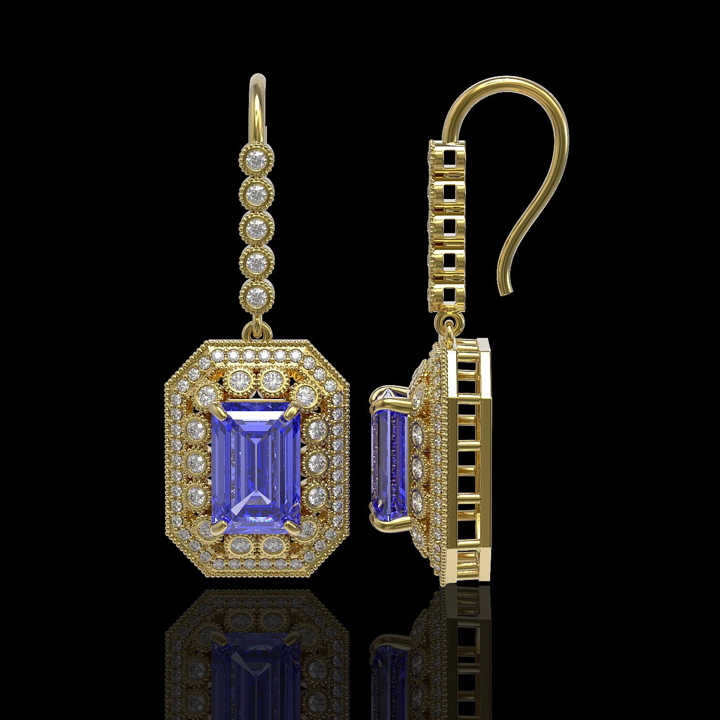 REF-672F8M - SKU: 43399 ---- 11.66 ctw Tanzanite & Diamond Victorian Earrings 14K Yellow Gold