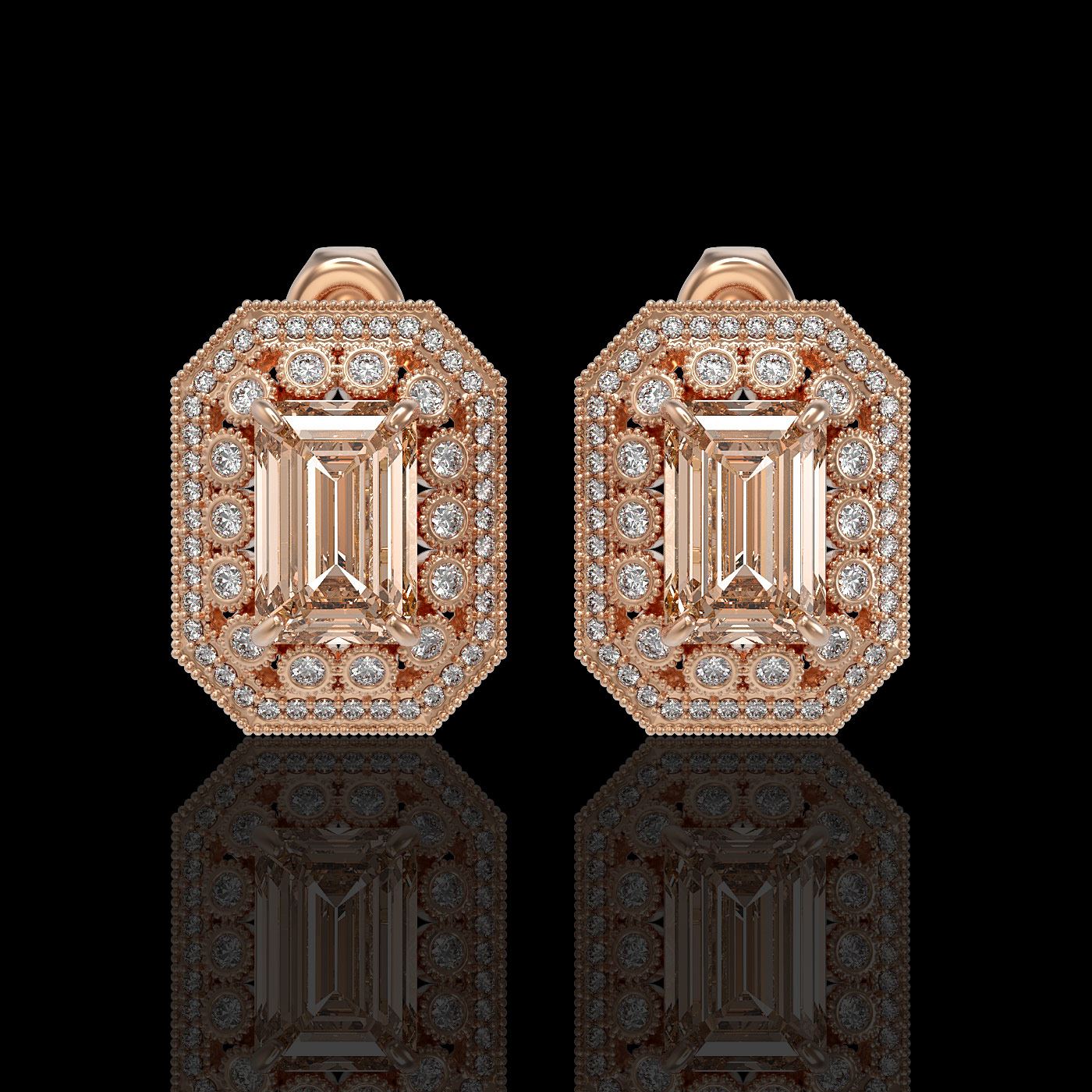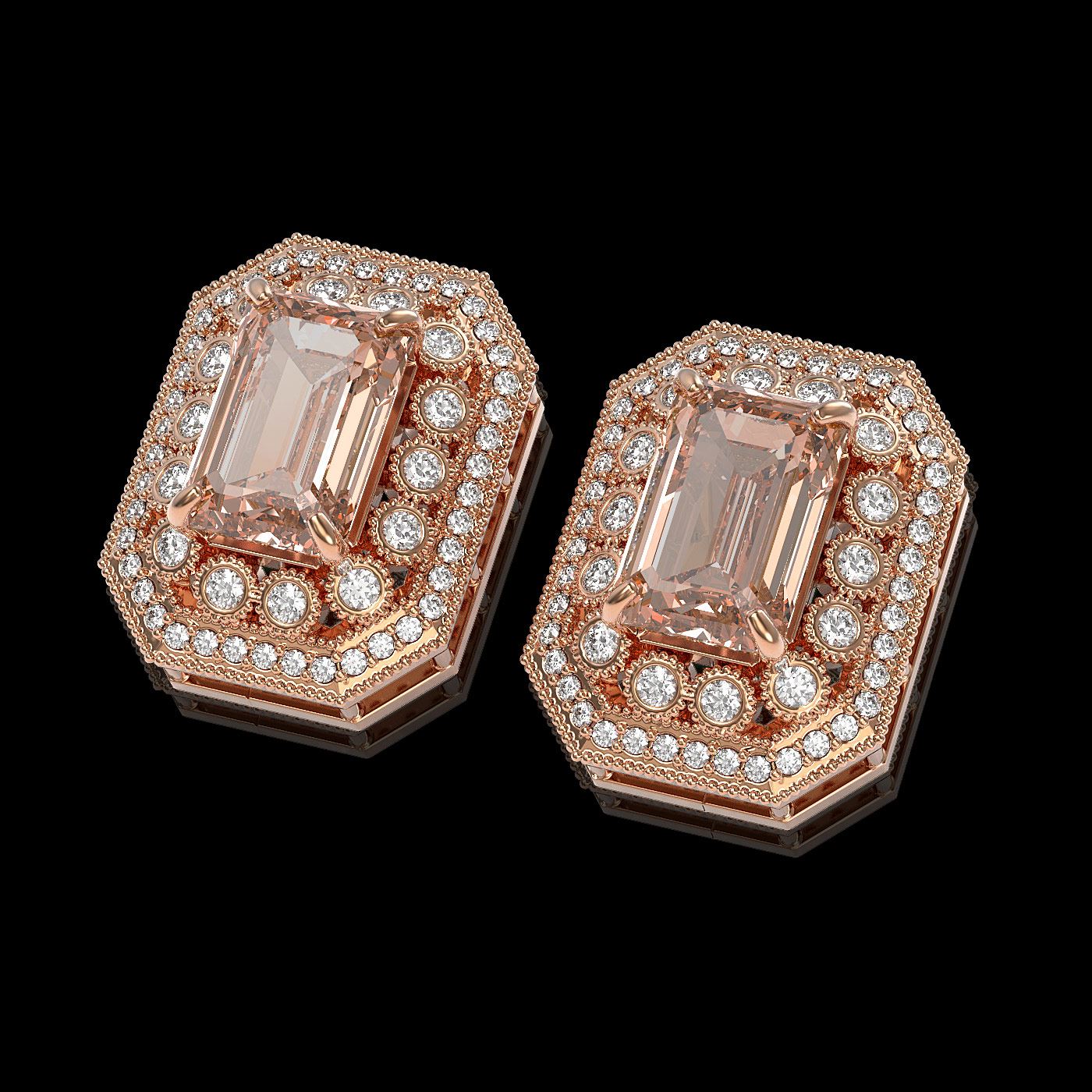 REF-381X5A - SKU: 43434 ---- 11.69 ctw Morganite & Diamond Victorian Earrings 14K Rose Gold