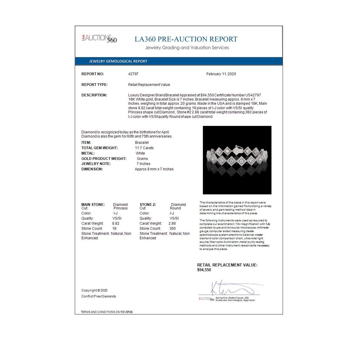 REF-1611N3F - SKU: 42797 ---- 11.7 ctw Princess Cut Diamond Micro Pave Bracelet 18K White Gold