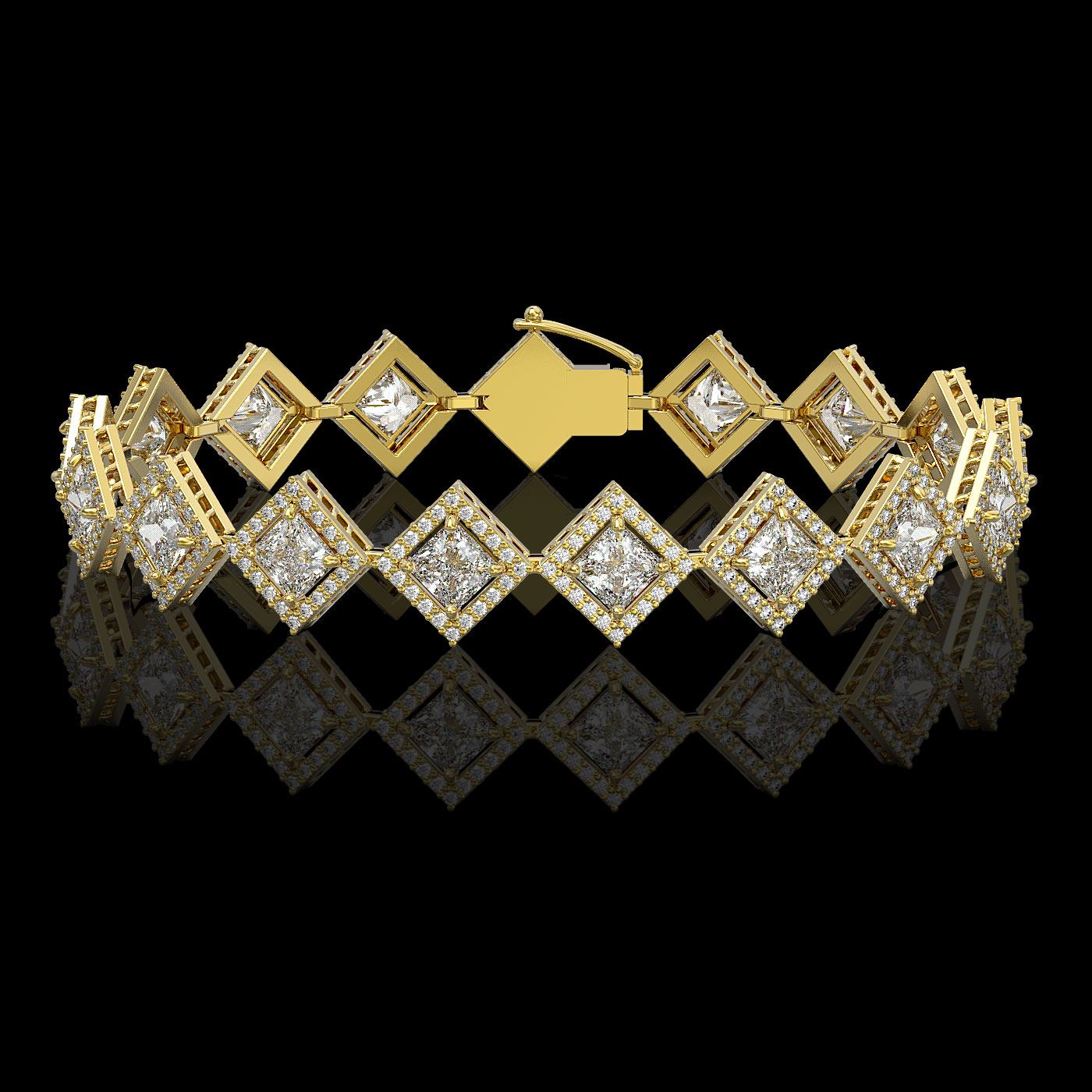 11.7 ctw Princess Cut Diamond Micro Pave Bracelet 18K Yellow Gold