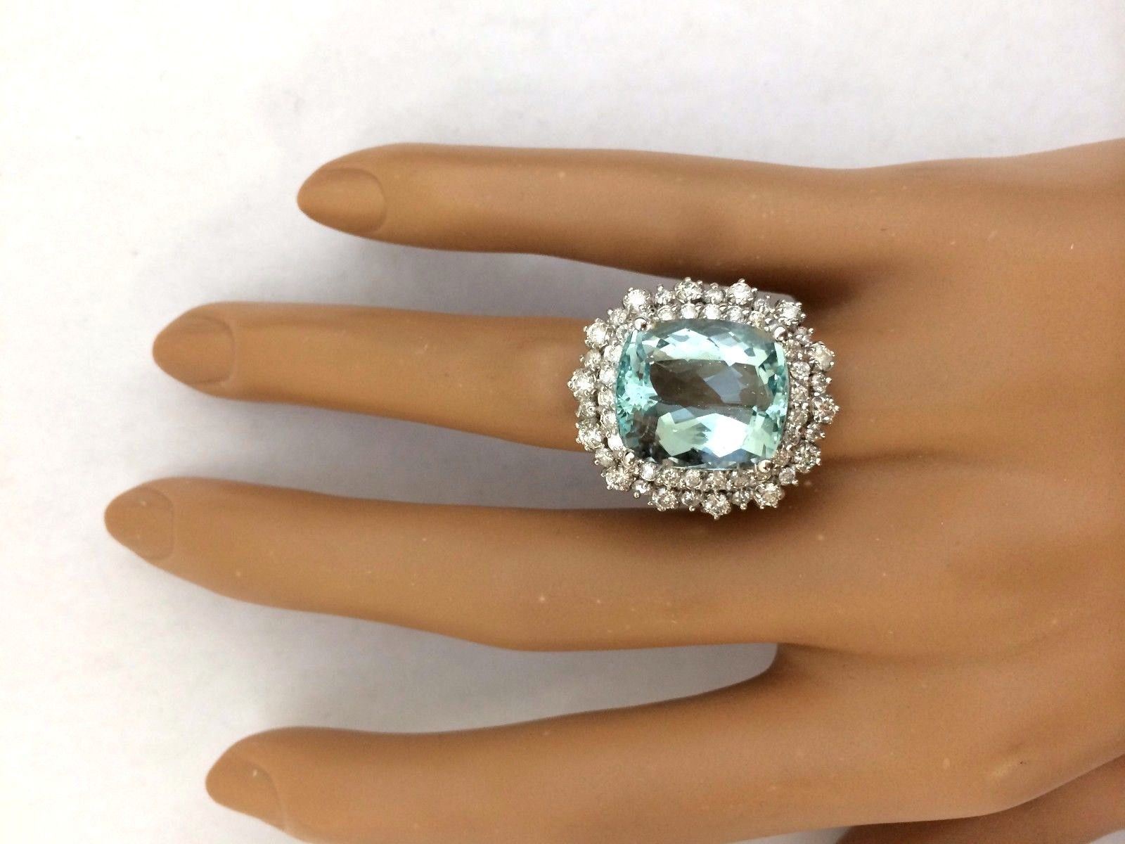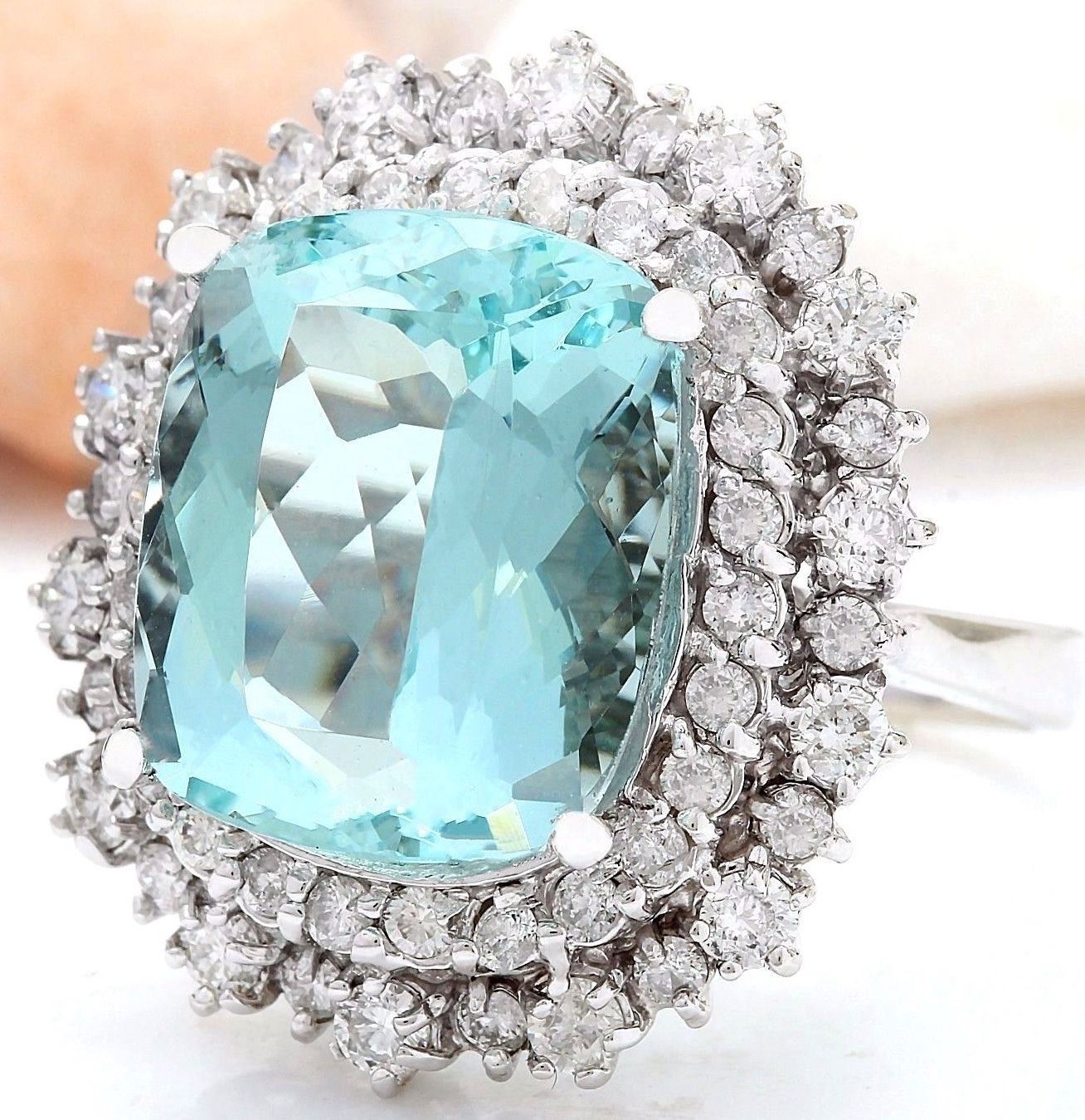 11.71 Carat Natural Aquamarine 18K Solid White Gold Diamond Ring