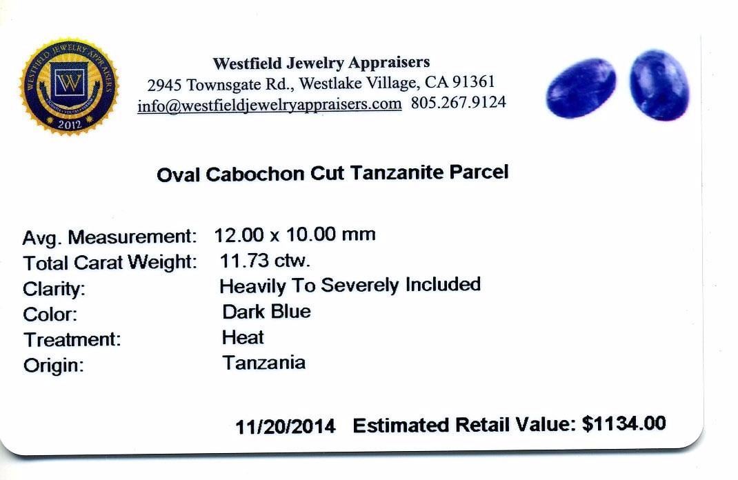 11.73ctw. Oval Cabochon Cut Tanzanite Parcel. Westfield Appraised at $1,134.00.