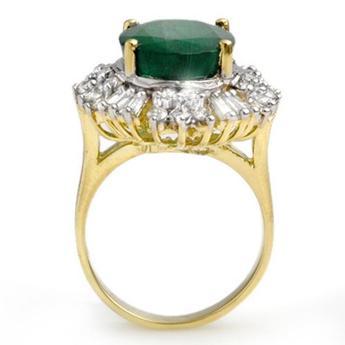 11.75 CTW Emerald & Diamond Ring 14K Yellow Gold ---- Luxury Designer Brand Ring Appraised Retail Price at $17,600 ---- SKU Number US14412 14k Yellow gold Ring Size is 7.25, Ring measuring approx. 1" x 15/16" , weighing in total approx. 10 grams. Made in the USA and is stamped 14k, Main stone 10 carat total weight containing 1 pieces of Intense Green color with AAA quality Oval shape cut Emerald , Stone #2 1.75 carat total weight containing 42 pieces of H-I color with VS/SI quality Round shape cut