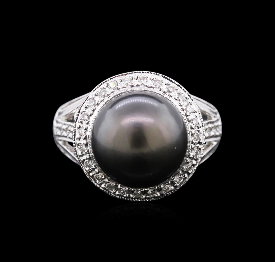 One ring featuring: 18KT white gold weighing 6.60 grams containing one tahitian pearl center stone measuring approximately 11.7mm and 36 brilliant cut diamonds with a total weight of 0.35ct.