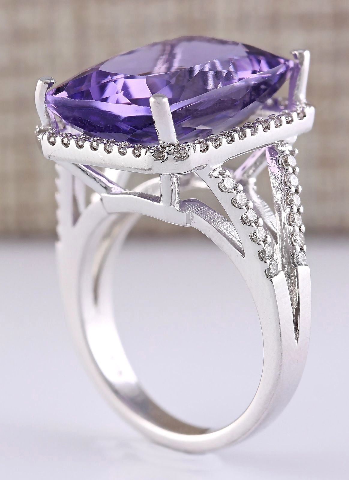 11.80 CTW Natural Amethyst And Diamond Ring In 18K White Gold