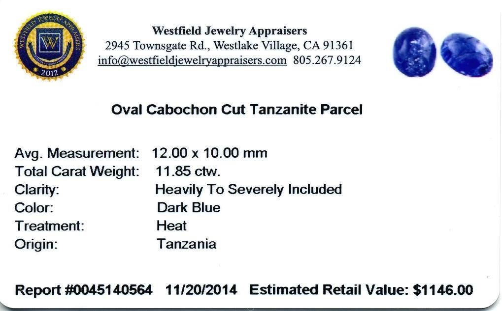 11.85ctw. Oval Cabochon Cut Tanzanite Parcel. Westfield Appraised at $1,146.00.