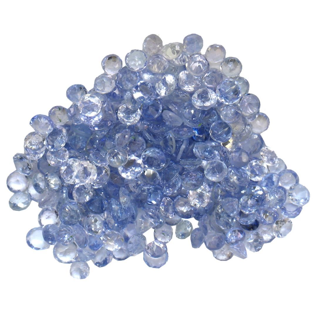 Fifty round mixed cut natural tanzanites, measuring 2.00 - 2.00 x 1.30 mm, exact total weight 11.86ct., clarity is slightly included, type I, medium, very slightly grayish, violetish blue color, (GIA vB 5/3), cut is good. Measurements & the color grade are an average for the group, Color grade is an average for the group, Transmitting light with no distortion, transparent, Naturally occurring internal & external characteristics are present, Indications of multiple laboratory enhancements, including high temperature heat treatment. Westfield Appraised at $1,140.00.