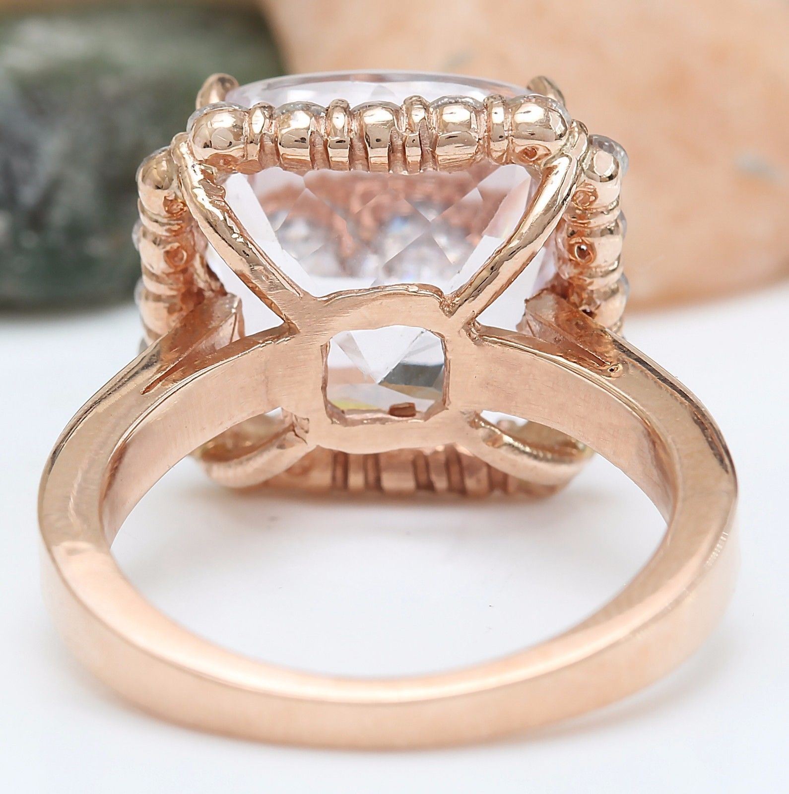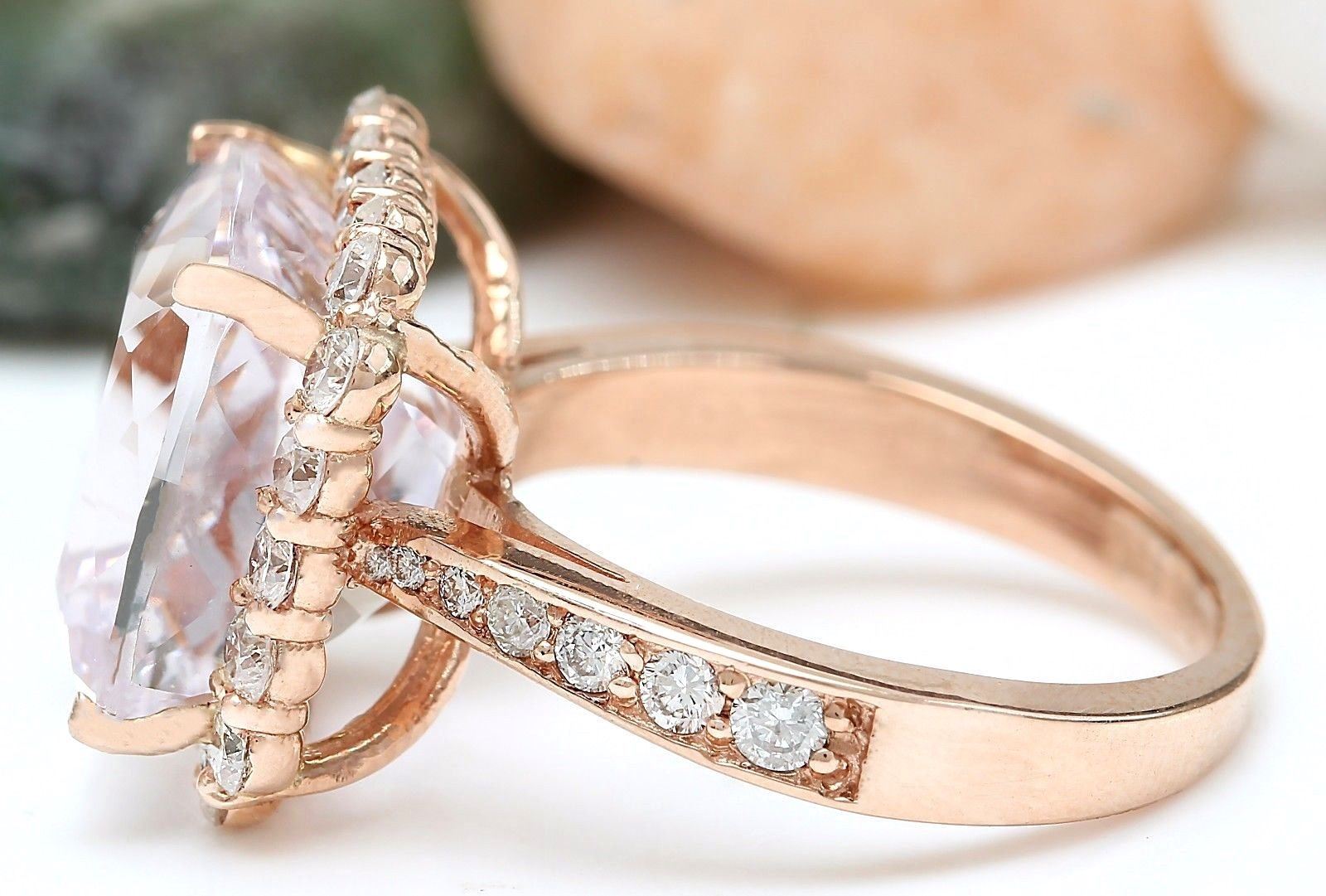 11.87 Carat Natural Kunzite 14K Solid Rose Gold Diamond Ring