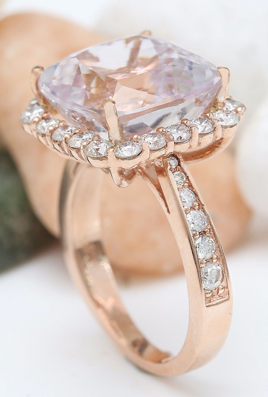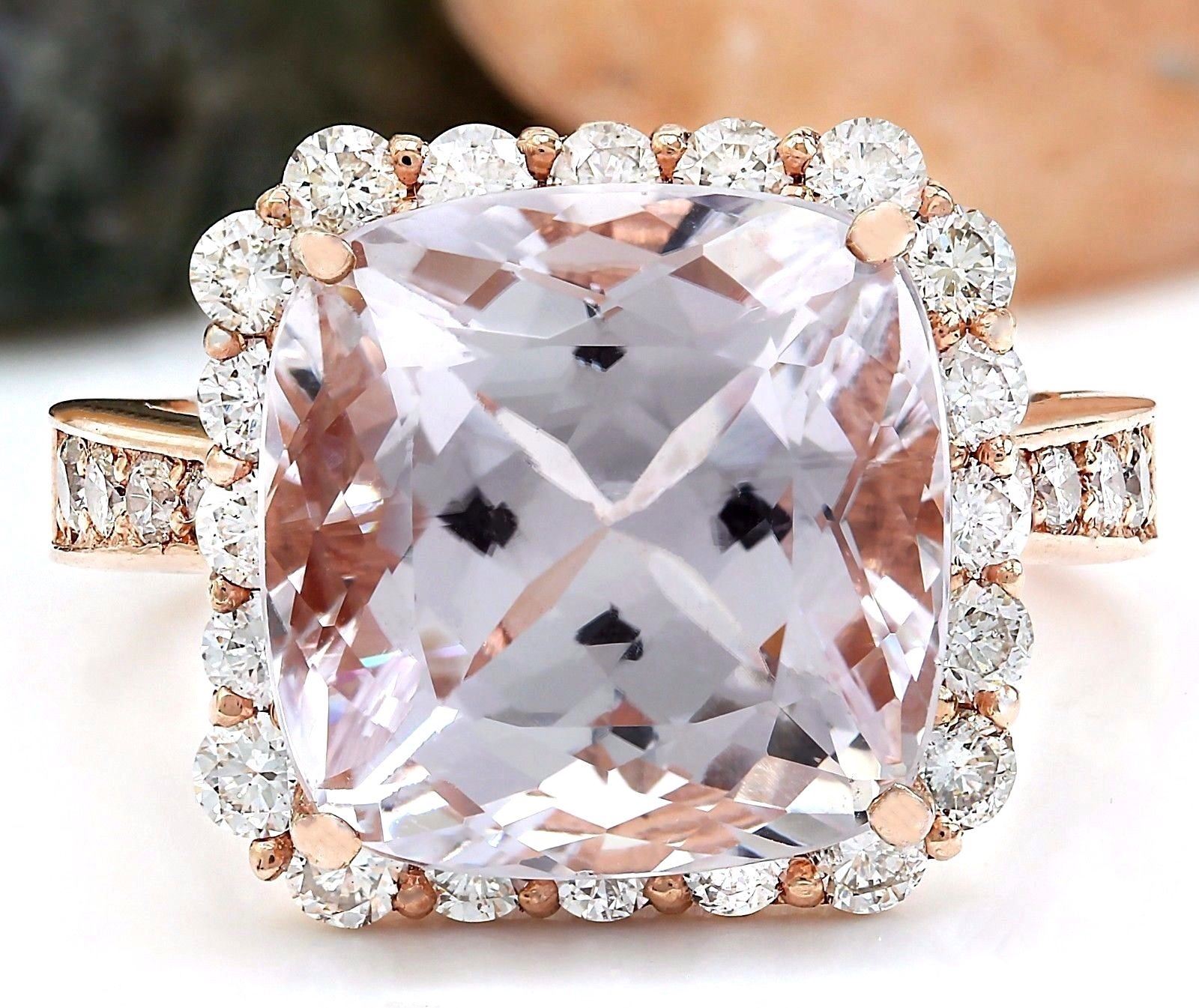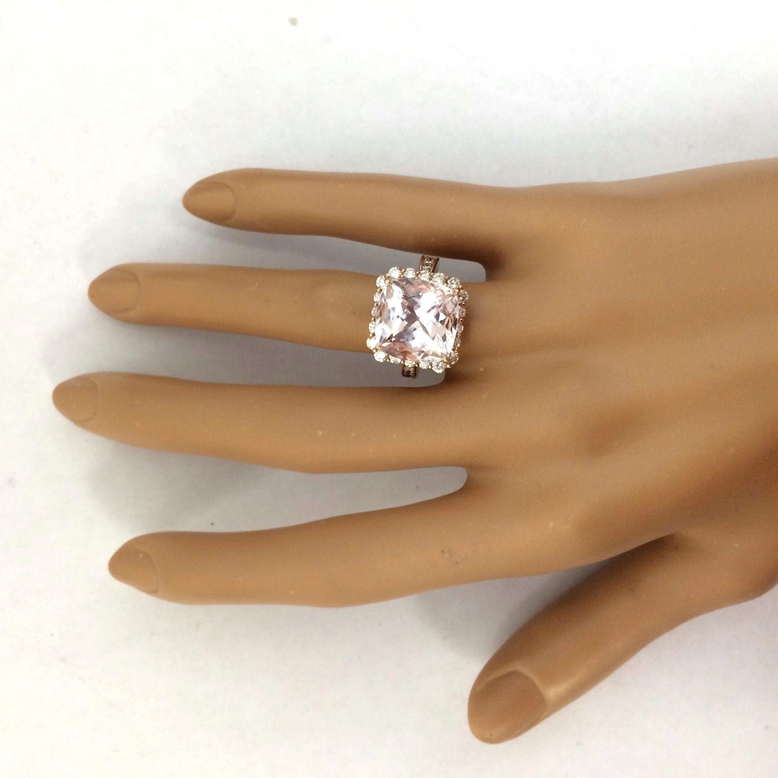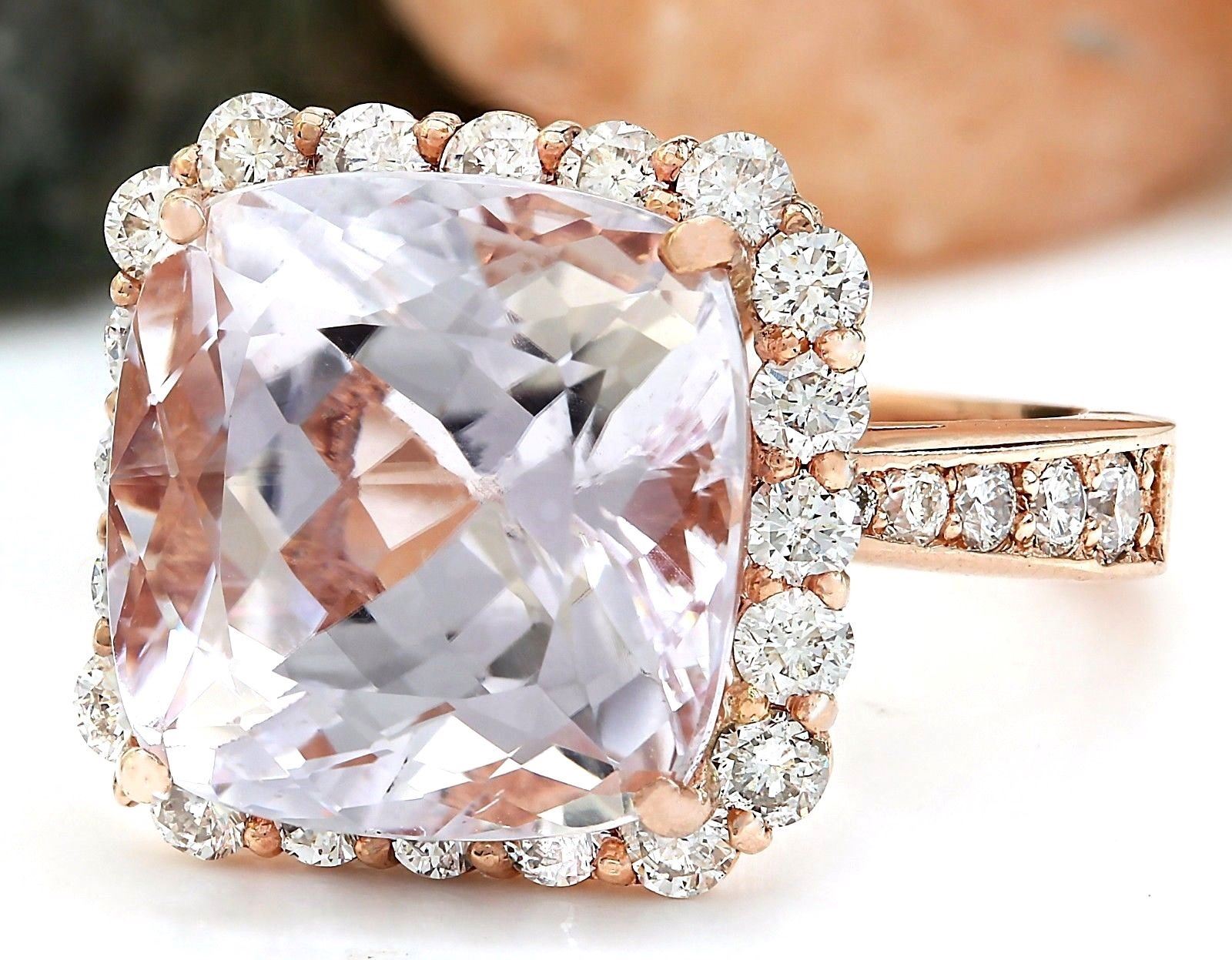 11.87 Carat Natural Kunzite 18K Solid Rose Gold Diamond Ring