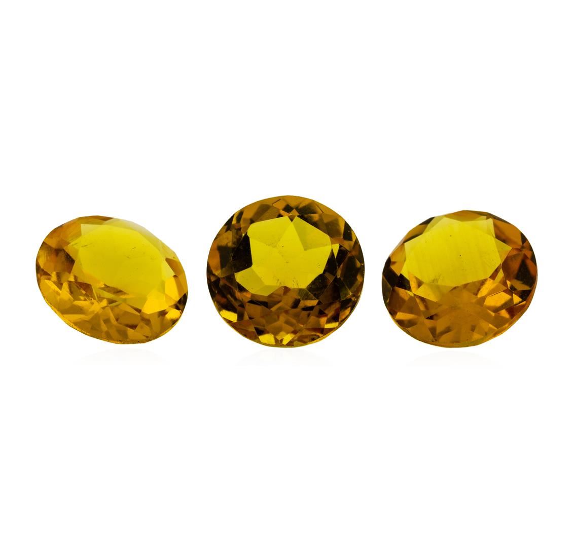 One natural round cut citrine quartz parcel of three with an exact weight of 11.92ctw., clarity is eye clean, yellowish orange, medium dark. Gemological Appraisals Services estimates the retail value at $476.8 GAS Appraised.