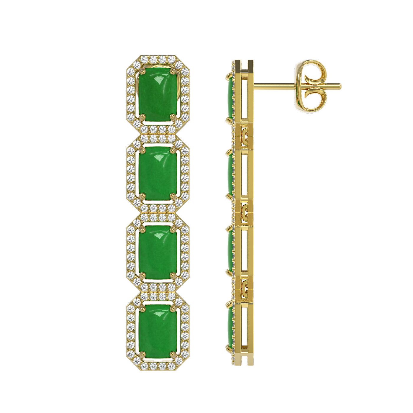 SKU: 46073 ---- 11.93 ctw Jade & Diamond Micro Pave Halo Earrings 10k Yellow Gold