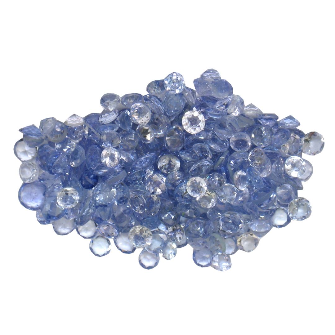 Fifty round mixed cut natural tanzanites, measuring 2.00 - 2.00 x 1.30 mm, exact total weight 11.94ct., clarity is slightly included, type I, medium, very slightly grayish, violetish blue color, (GIA vB 5/3), cut is good. Measurements & the color grade are an average for the group, Color grade is an average for the group, Transmitting light with no distortion, transparent, Naturally occurring internal & external characteristics are present, Indications of multiple laboratory enhancements, including high temperature heat treatment. Westfield Appraised at $1,150.00.