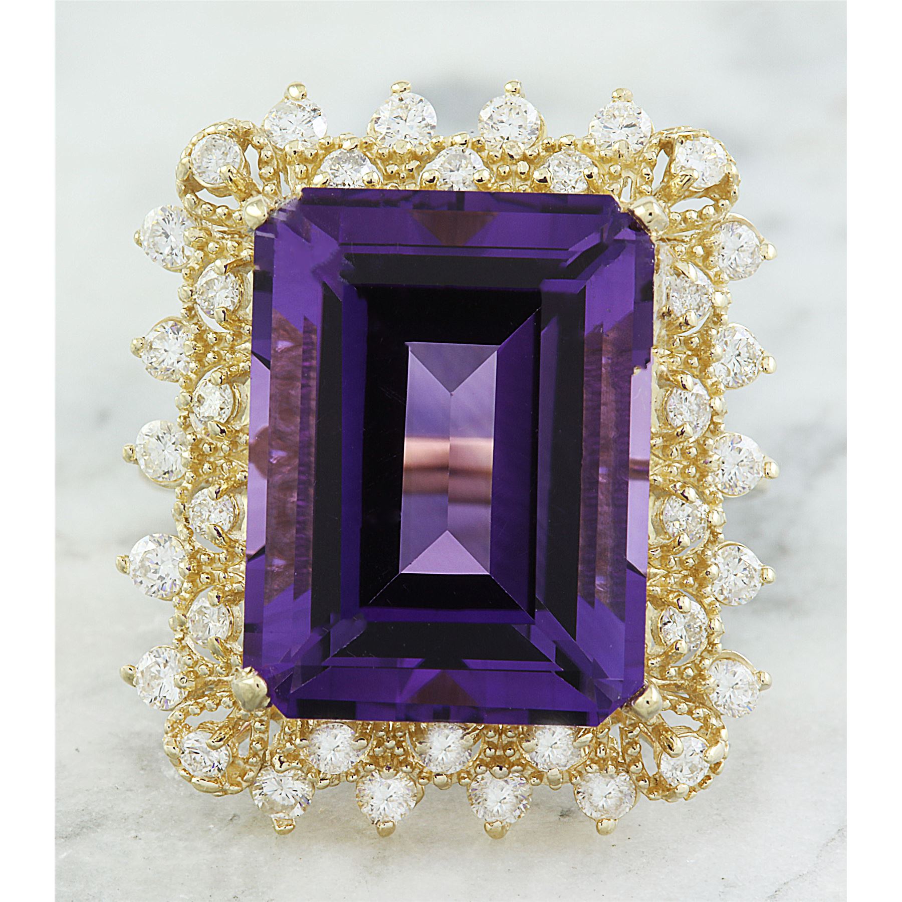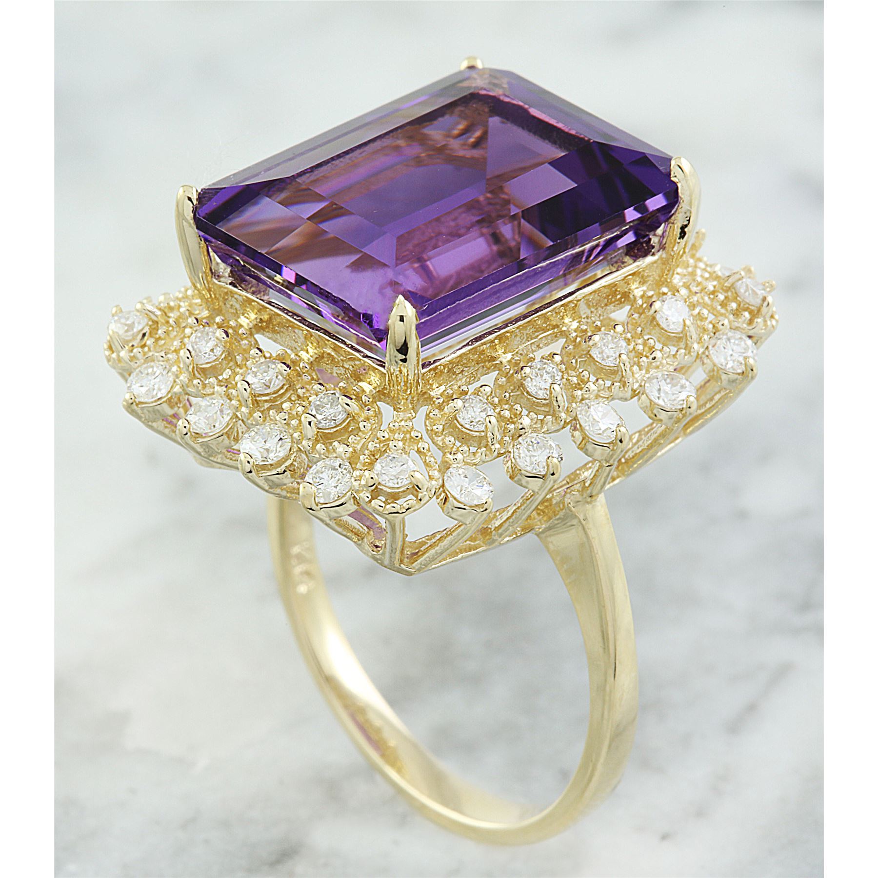 11.95 CTW Amethyst 18K Yellow Gold Diamond Ring