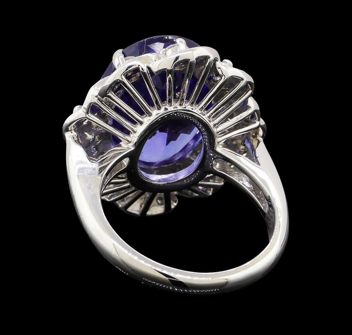 One ring featuring: Platinum containing Tanzanite with a total weight of 11.95ct and Diamonds with a total weight of 0.77ct. Total Weight of Ring: 15.1 grams.