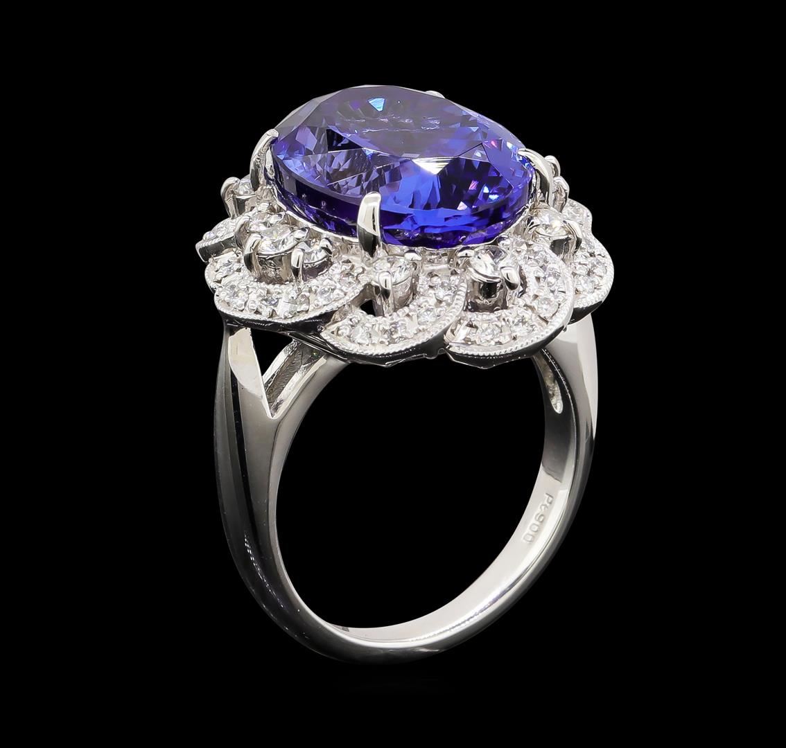 One ring featuring: Platinum containing Tanzanite with a total weight of 11.95ct and Diamonds with a total weight of 0.77ct. Total Weight of Ring: 15.1 grams.