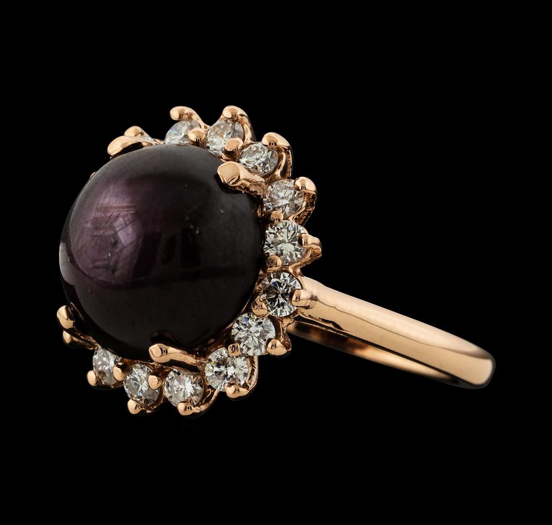 One ring : 14KT rose gold weighing 5.25gm containing star ruby with a total weight of 11.96ct and diamonds weighing 0.80ctw.