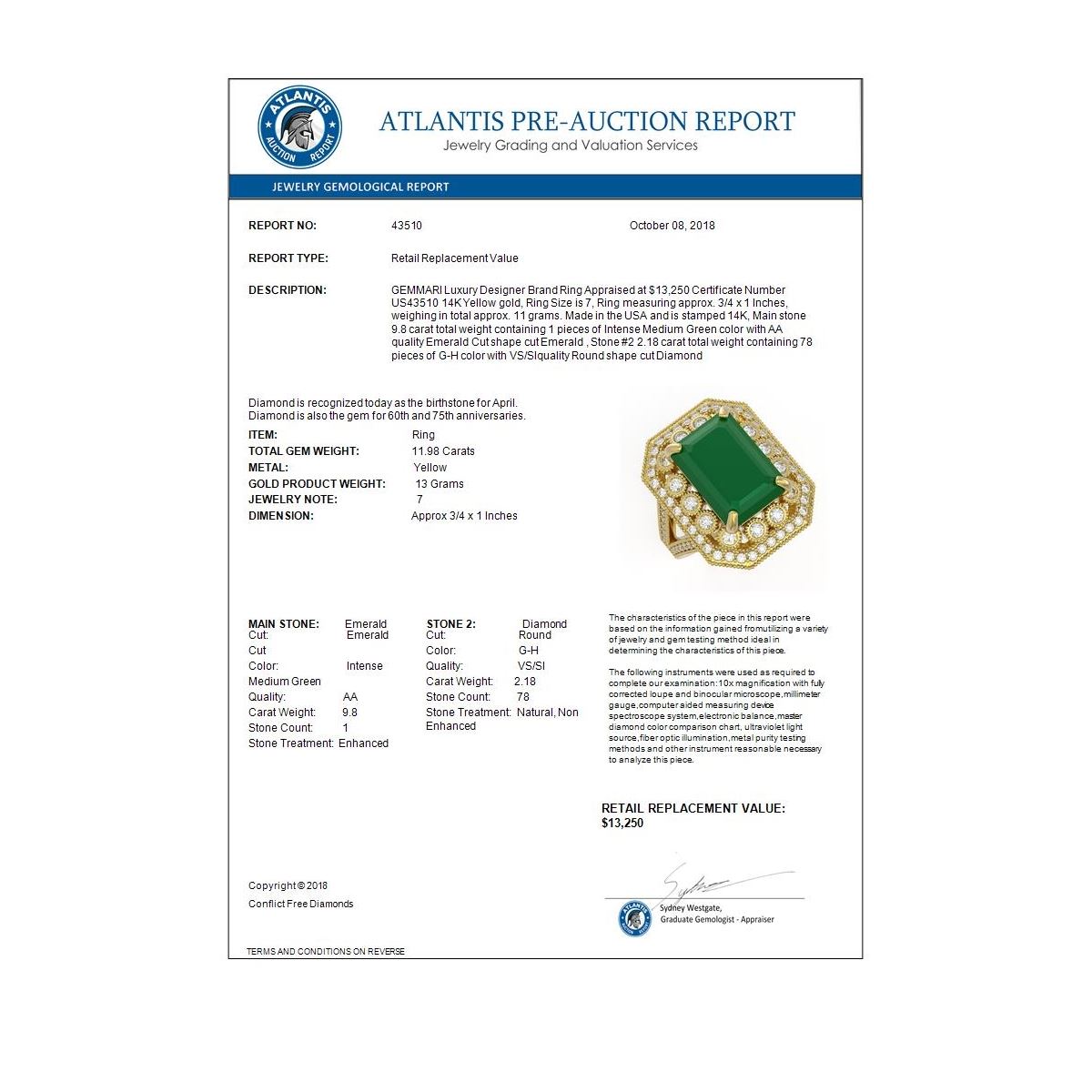 11.98 ctw Emerald & Diamond Ring 14K Yellow Gold