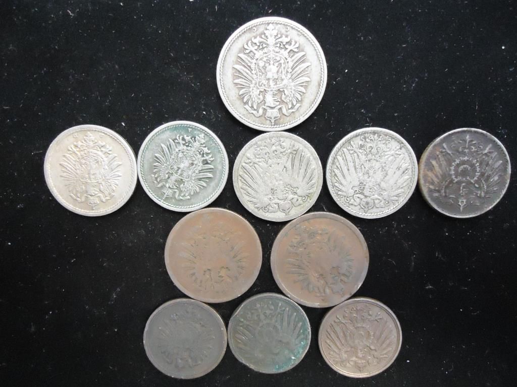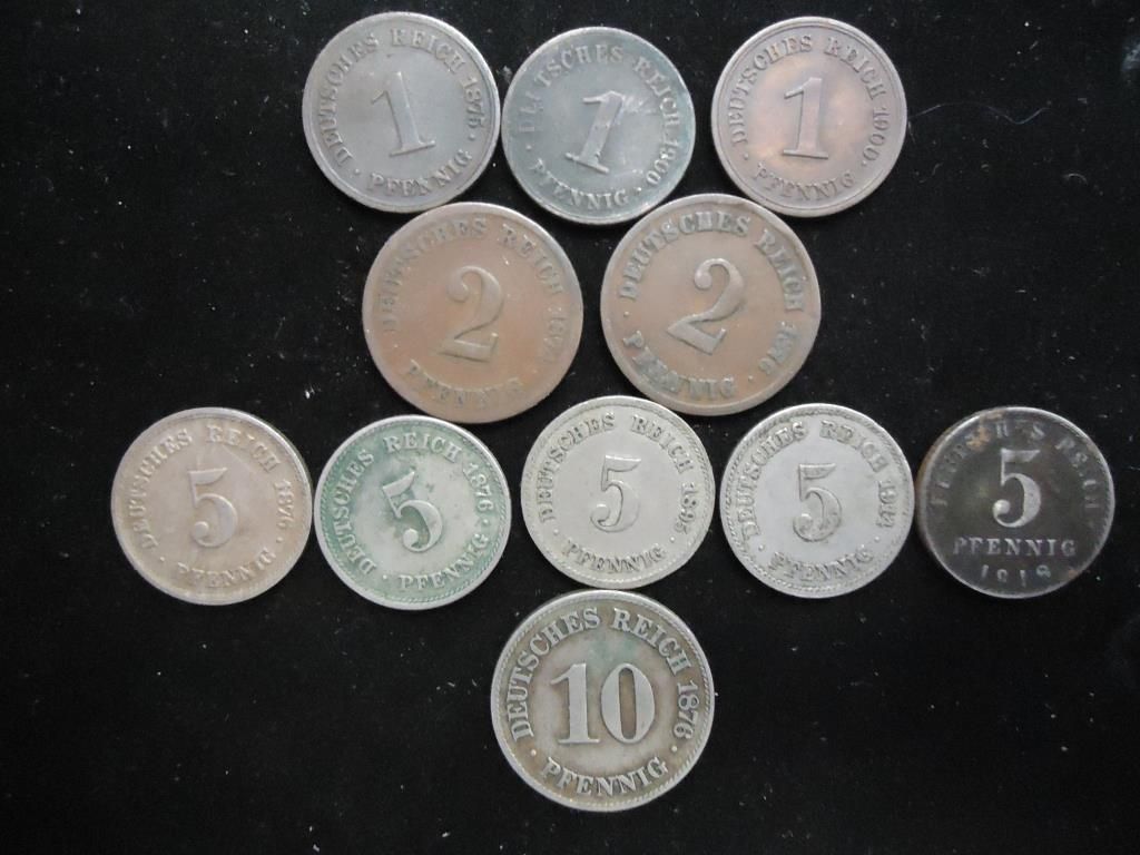 1 PFENNIGS 1875, 1900 & 1900, TWO PFENNIGS 1874 & 1876, 5 PFENNIGS 1876, 1876, 1895, 1914 & 1918 AND 10 PFENNIG 1876