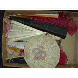 11 ASSORTED VINTAGE HAND FANS. Made of paper & fabric.