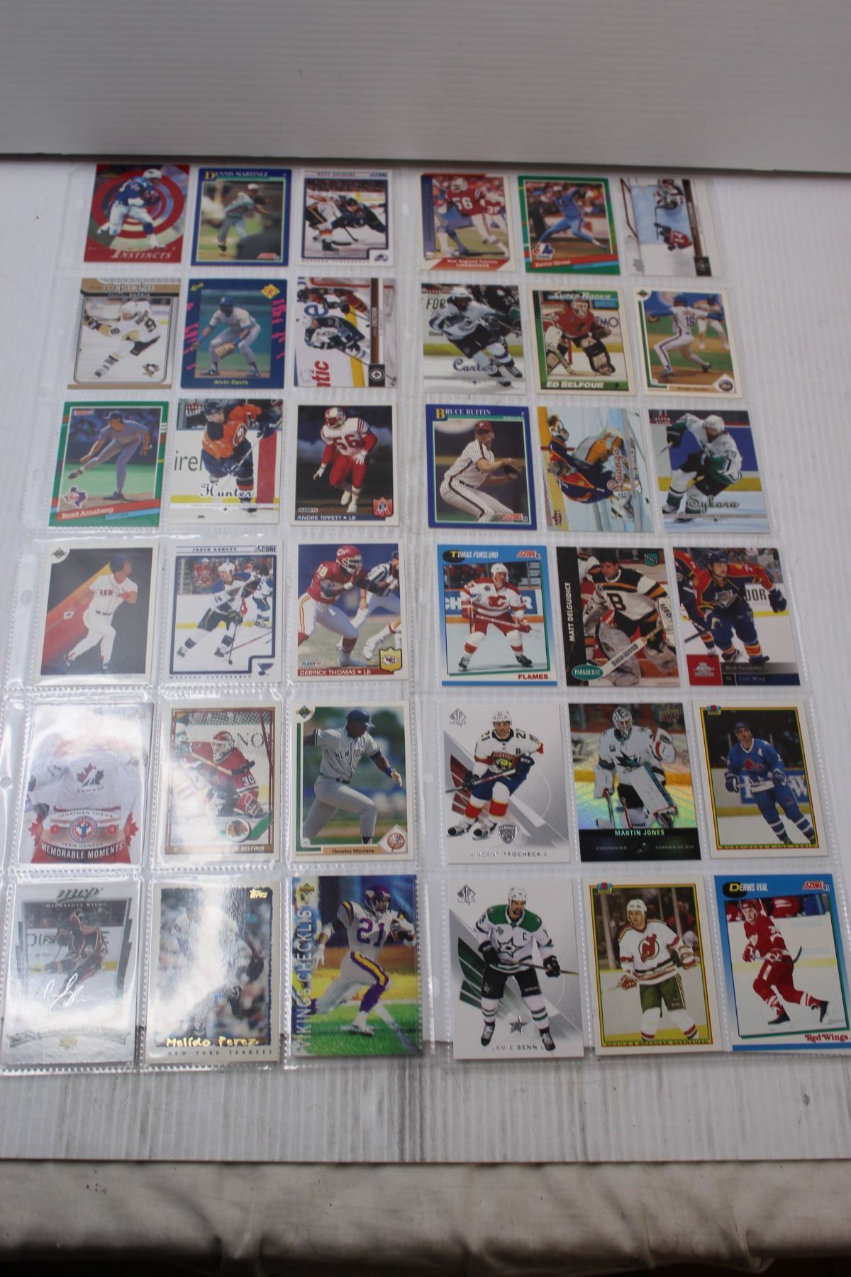 (11) Album Pages of Various Sports Collector Cards - 90 + Cards