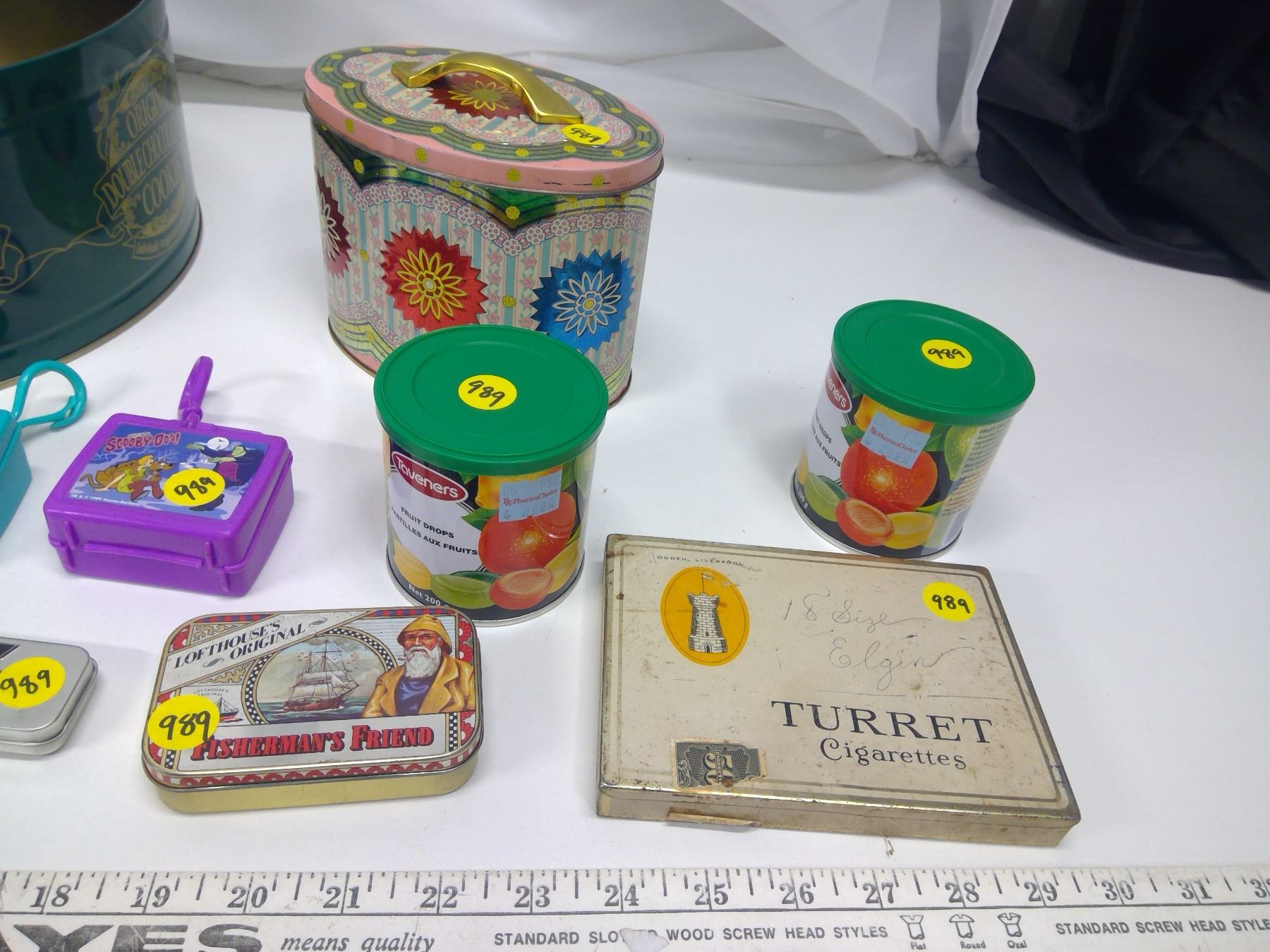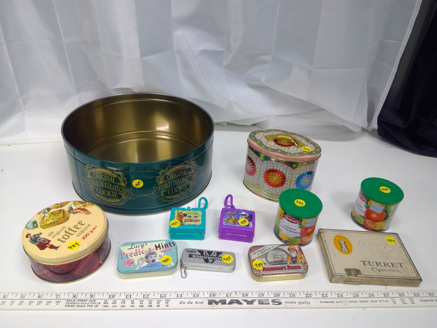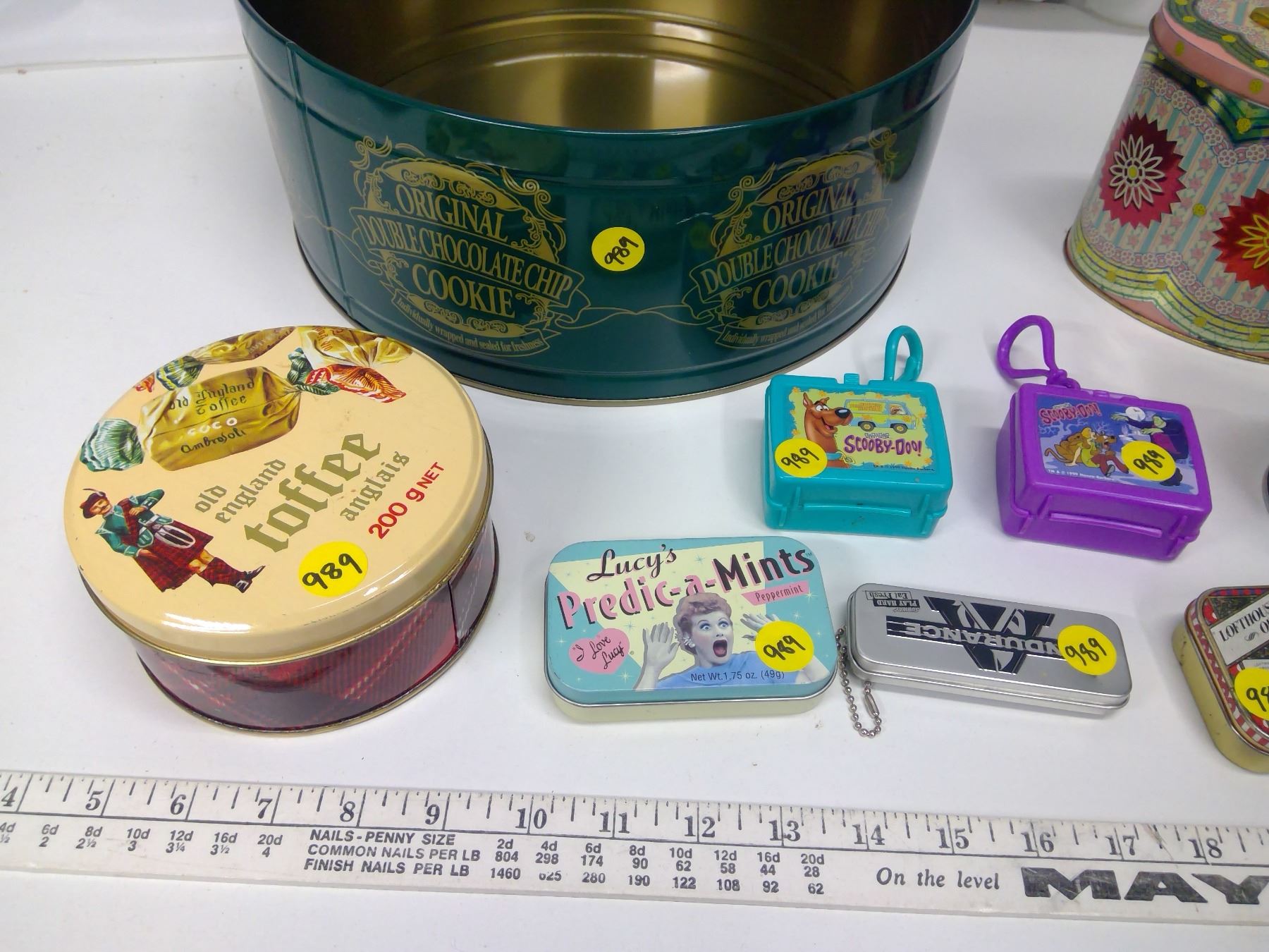 11 Assorted Tins, etc. - Old England, Predic-a-Mints, Scooby-Doo, Turret