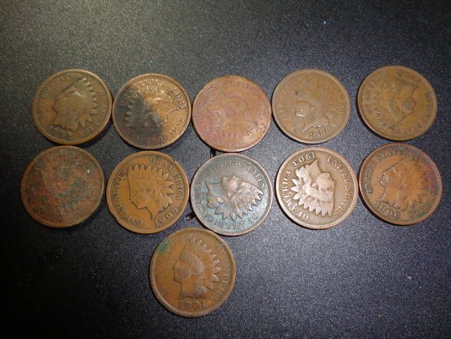 11 Asstd Date Indian Head Pennies
