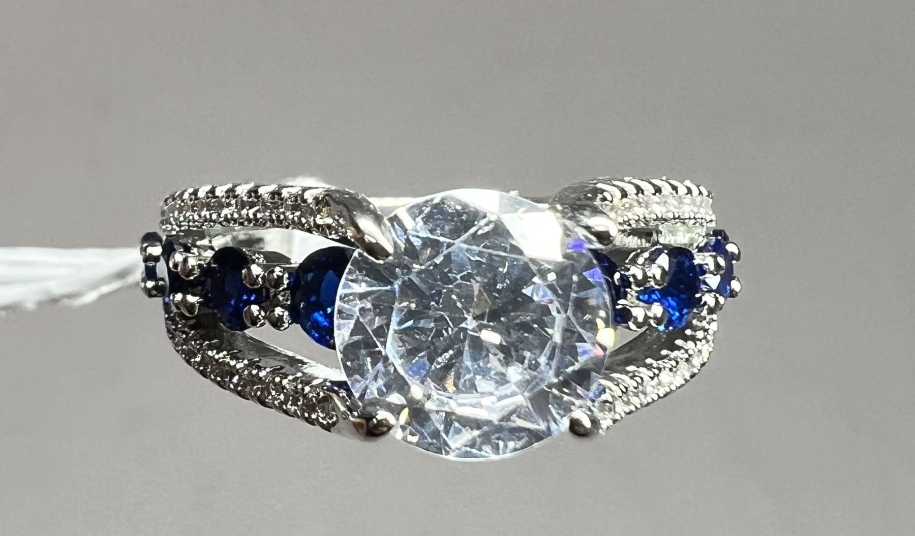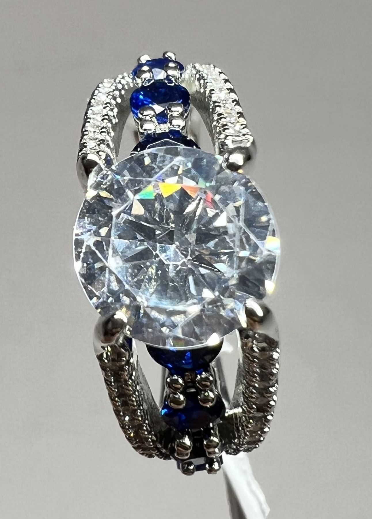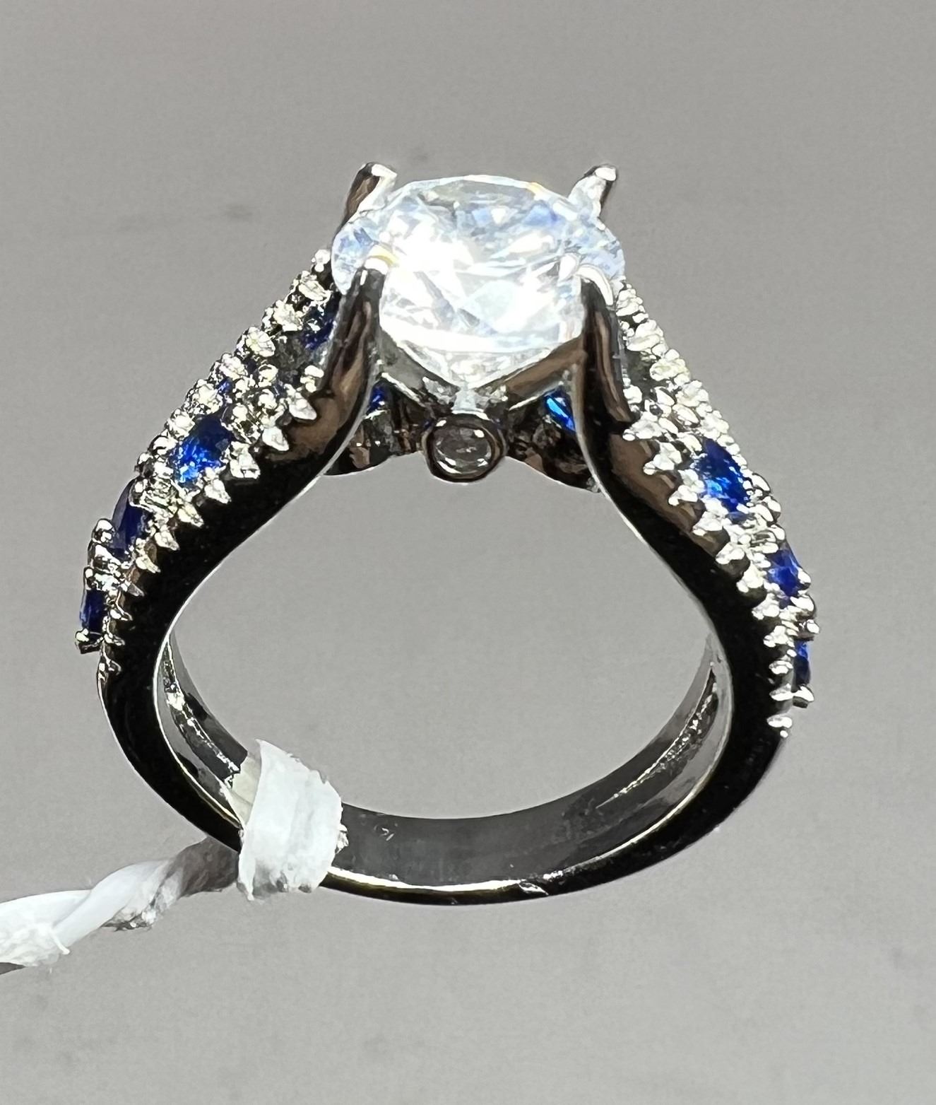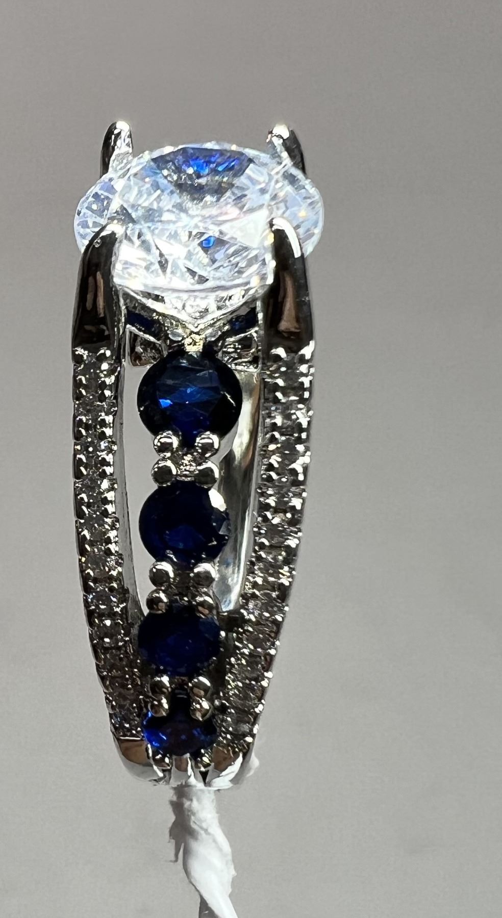 11. Blue Sapphire, Lab Created, Claw Set, S925 Overlay, Size 7.25