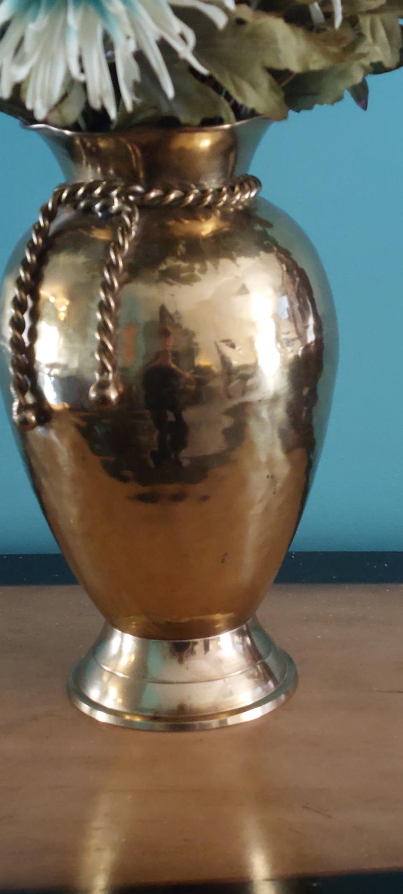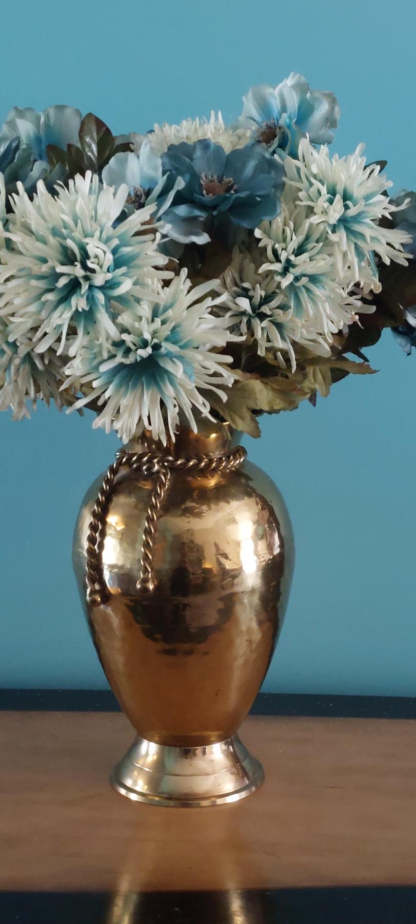 11" Brass Vase With Florals - 20" Overall - Exc condition