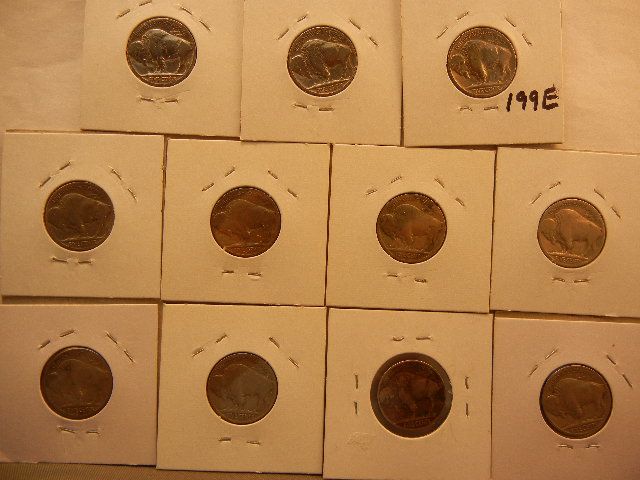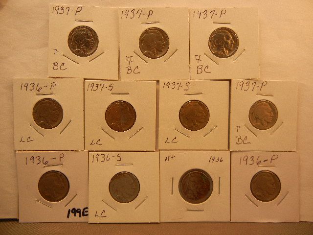11-Buffalo Nickels 1936-S (4) 1936, (4) 1937-P, (2) 1937-S