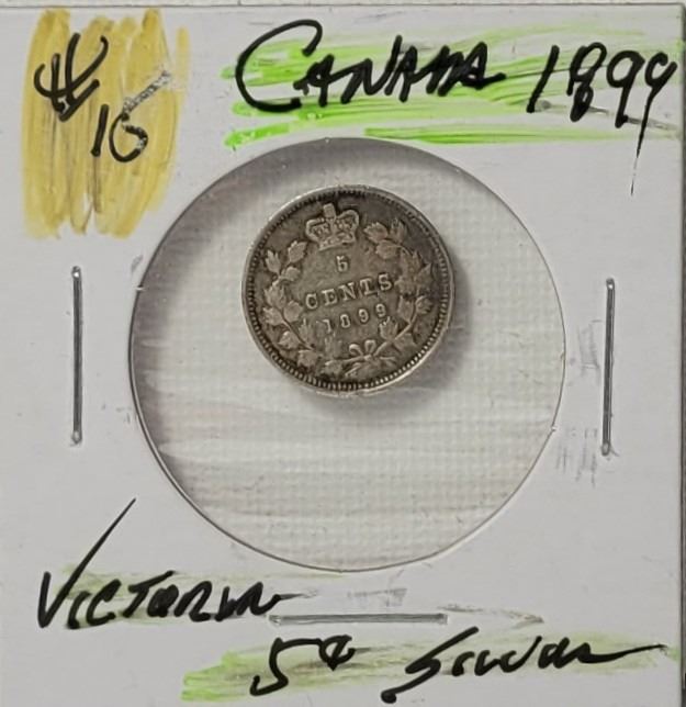 11) CANADIAN VICTORIAN 1899 5 CENT COIN,