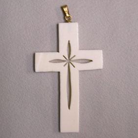 CARVED VINTAGE IVORY CROSS. IT WEIGHTS 11 CTS AND MEASURES 45x20 MM. METAL DETAIL FOR PENDANT.