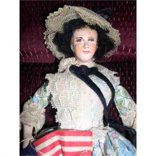 11" Composition Betsy Ross Type Doll.If she is not composition, it is some type of composition type pottery material. Doll comes from a smoke free environment. She has a cloth body with attached head, arms, and legs. Buyer to pay $10 for shipping, handling, and insurance. Thanks for viewing.