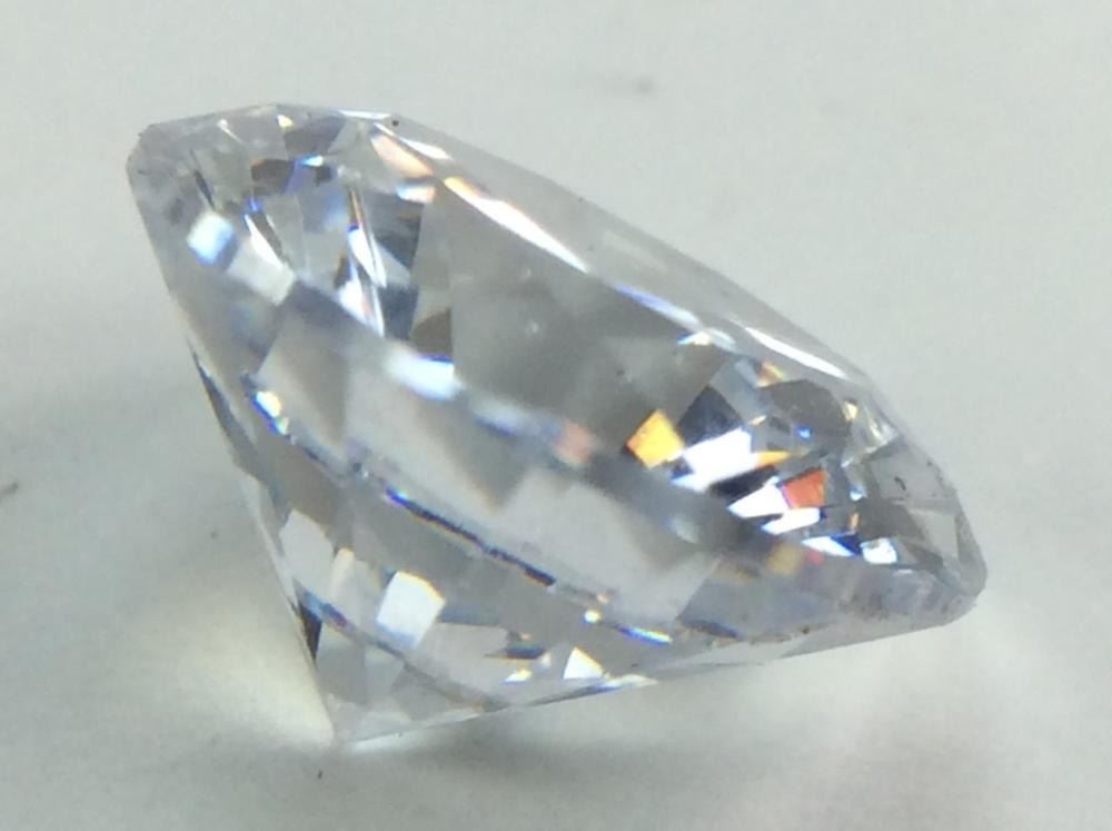 11 Ct. Round Faceted Lab Created Diamond. This Sparklinfg Created Diamond Center Stone Is In Great Condition. Size: 12 x 8mm Approx. Net Weight 11 cts.