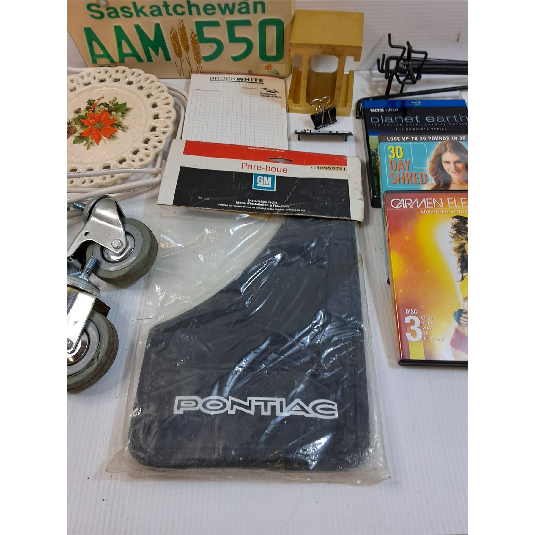 (11) DVDS, Yoga & Life, Castor Wheels, License Plate, Pointsettia, Pontiac Mud Flaps, Misc