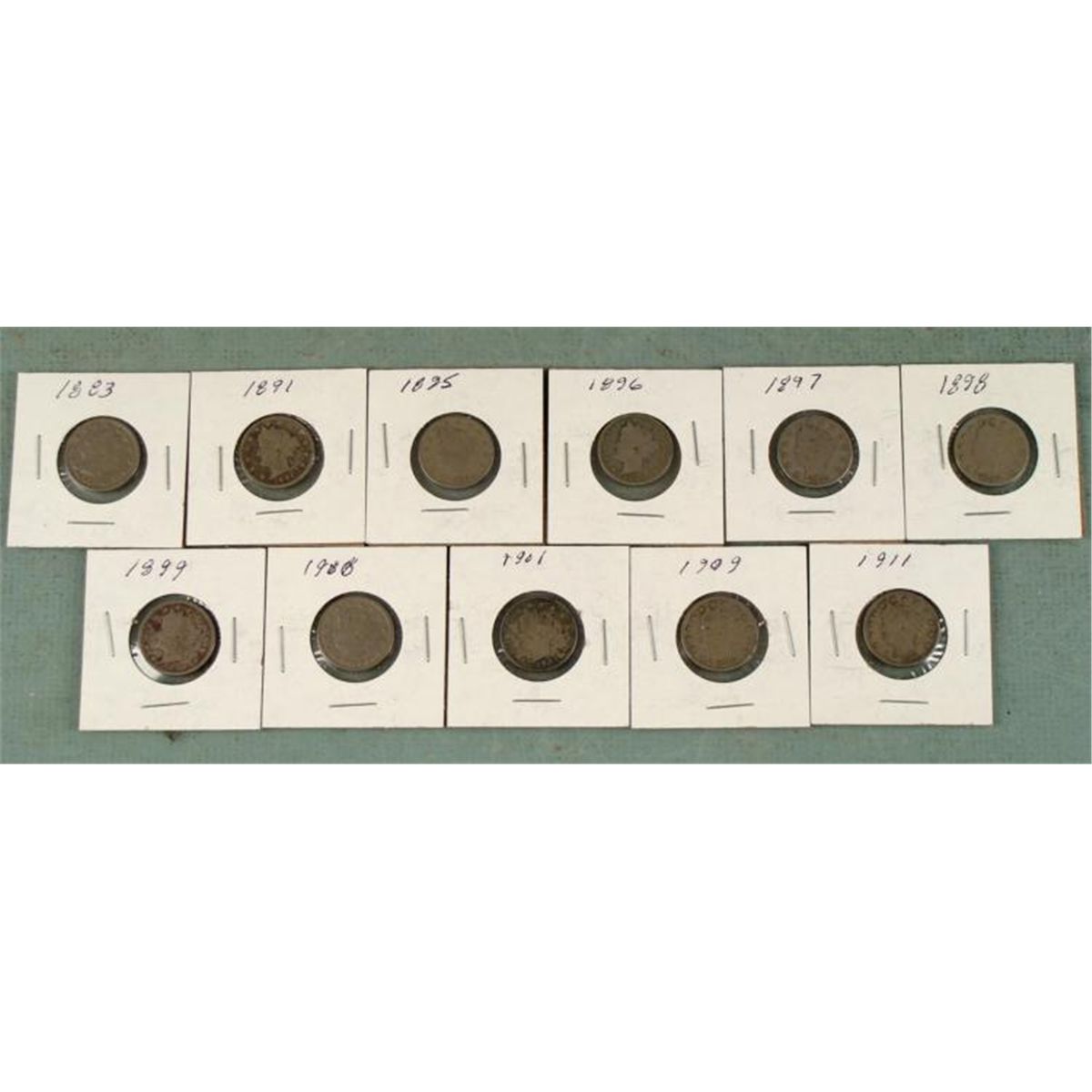 11 different date V NickelsDetails: All Clear DatesDates: 1883, 91, 95, 96, 97, 98, 99, 1900, 1901, 09, 11