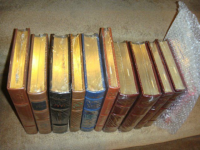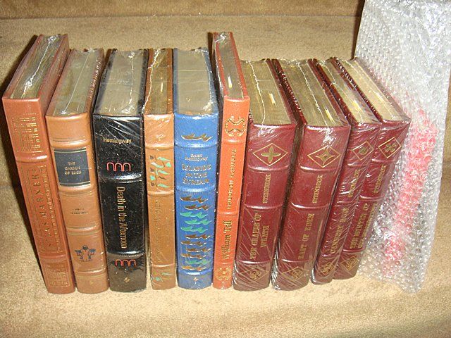 11 Estate Books. Beautifully bound with gold lettering on spines, some still in plastic shrink wrap and bubble wrap packaging. This set of classic literature includes: Silas Marner. The Garden of Eden, Men without Women, Death in the Afternoon, and Island in the Streem by Ernest Hemingway. William Tell, Friedrich Schiller, The Grapes of Wrath, EAst of Eden, Cannery Row, and The Winter of Our Discontent by John steinbeck. Rip Van Winkle, Washington Irving