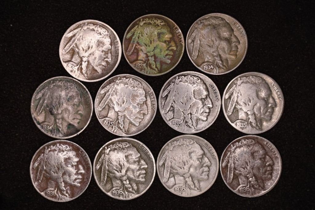 11-FULL DATE BUFFALO NICKELS: 1924, 1928, 2-1934,