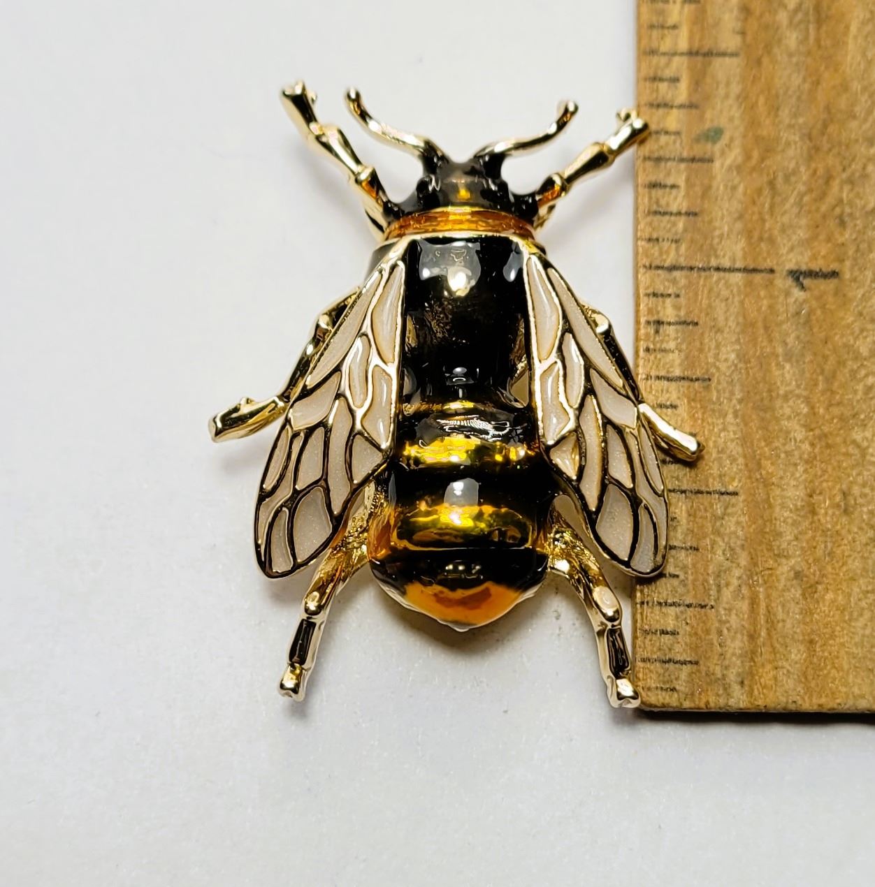 11) GOLD TONE WITH BLACK, CREAM & YELLOW ENAMEL