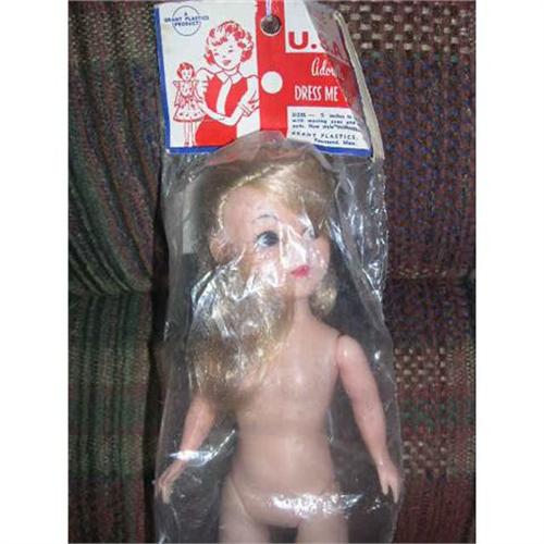 11" Hard Plastic Dress Me Doll Mint in Package. I'm assuming this is hard plastic/vinyl transaction. Arms are hard plastic and the head and body is a heavier vinyl I believe. The head has rooted hair so it has to be vinyl. There is a little pair of white vinyl slip on shoes in the bag. Bag says A Grant Plastics Product Made in U.S. A. Townsend, MASS. Adorable Dress Me Dolls Doll comes from a smoke free environment. Buyer to pay $10 for shipping, handling, and insurance. Thanks for viewing.
