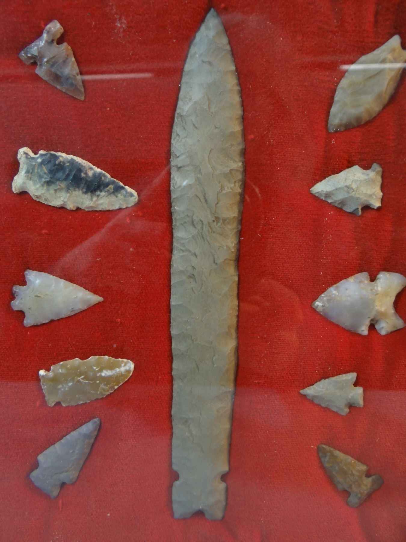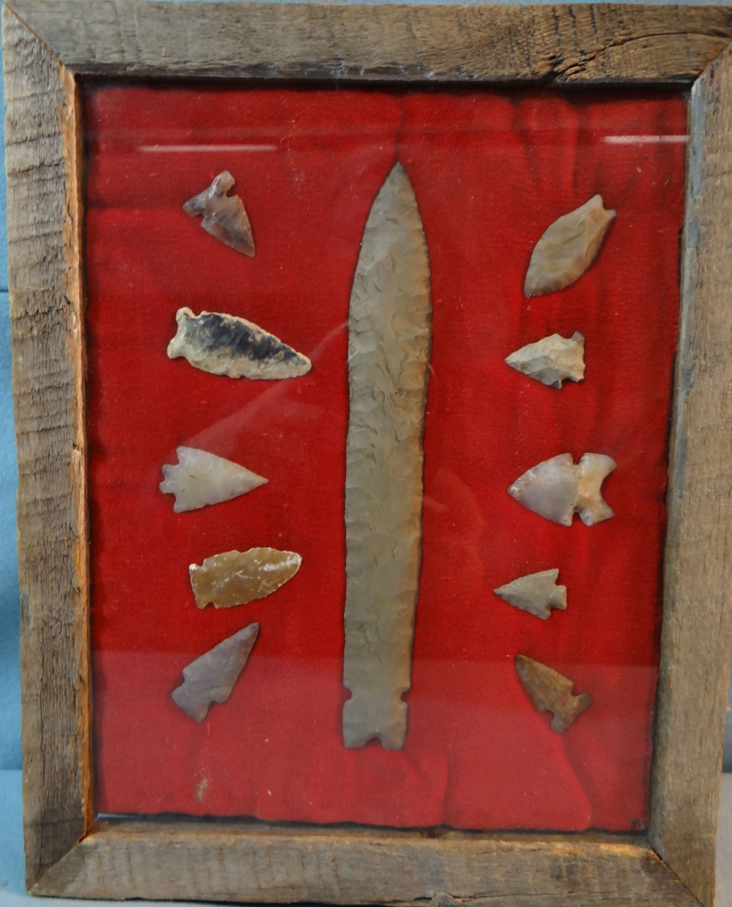 11 Indian artifacts, 10 points, 1 spear point, 7 1/2"
